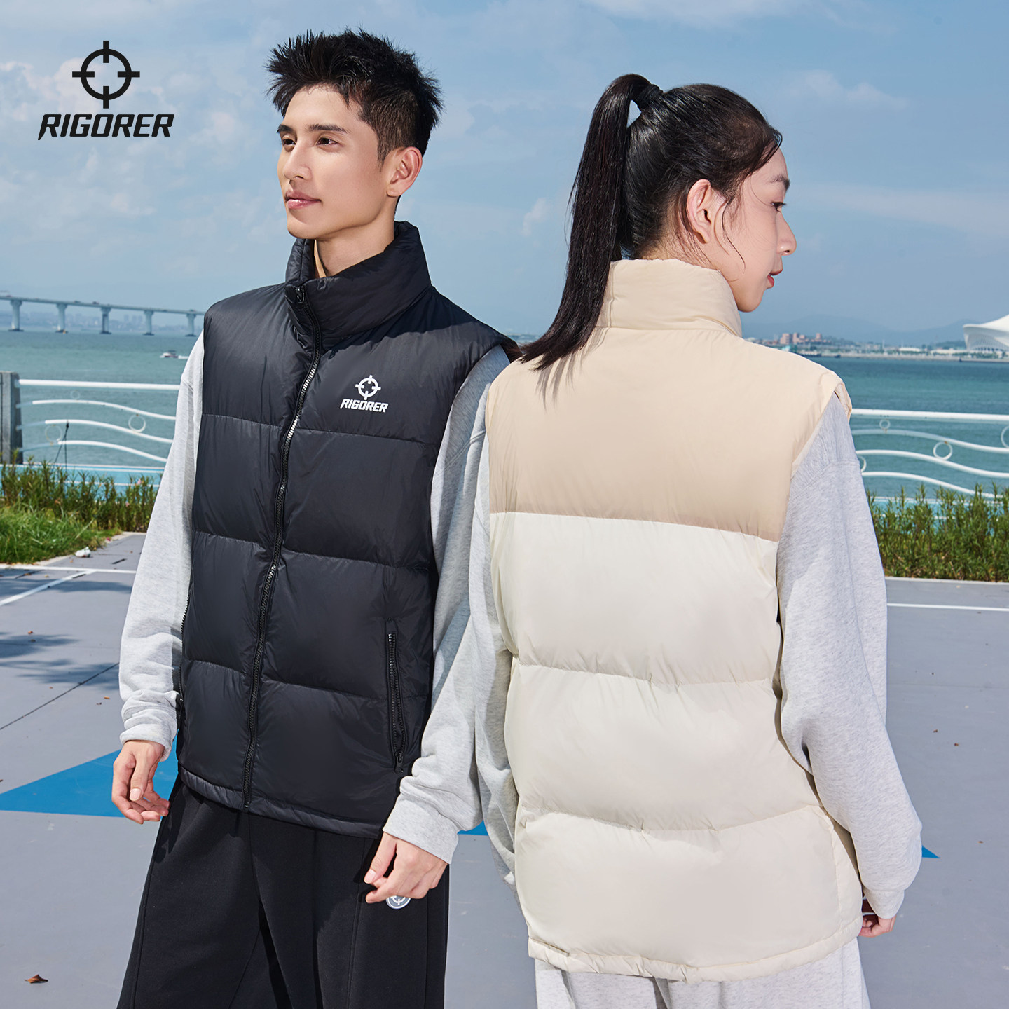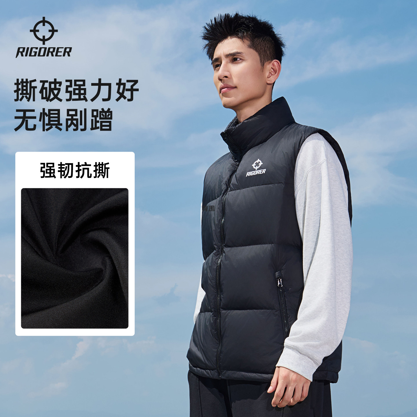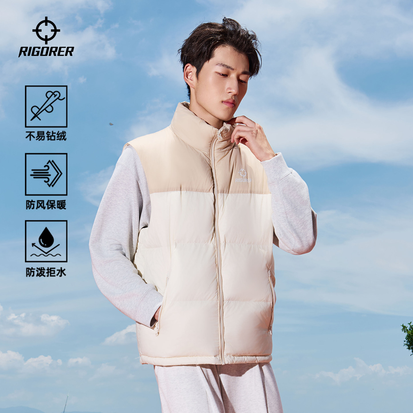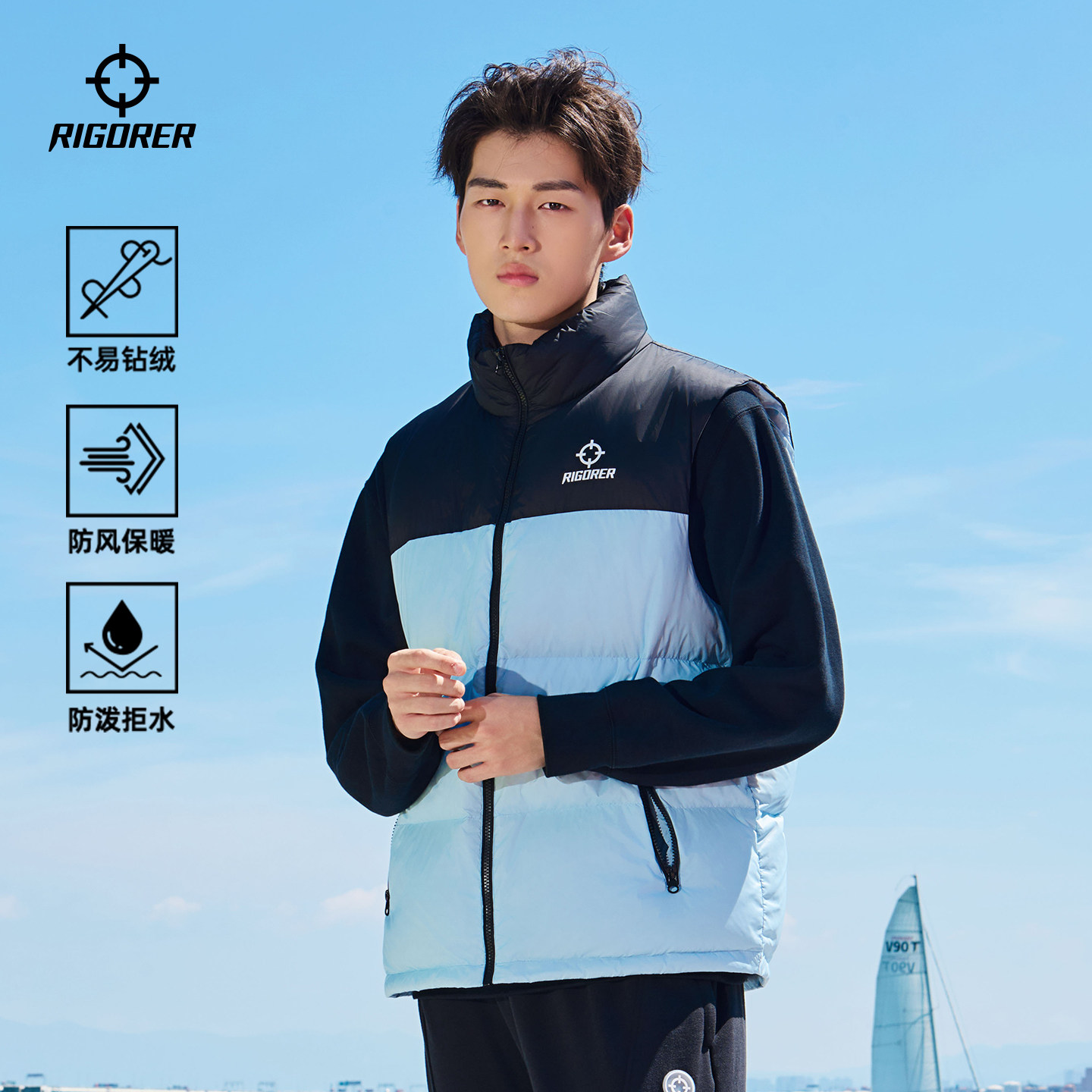 准者运动羽绒马甲男鸭绒冬季 加绒保暖户外防风防泼水立领情侣外套