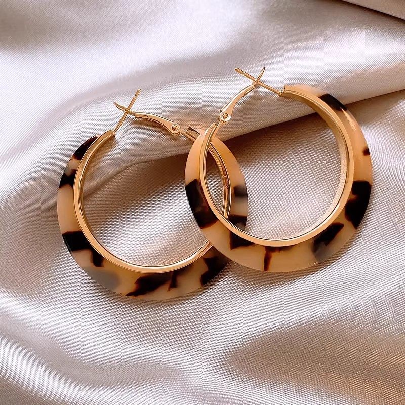 s925纯银许我耀眼赵露思同款 豹纹耳圈耳环轻奢高级感大圈耳饰爆款