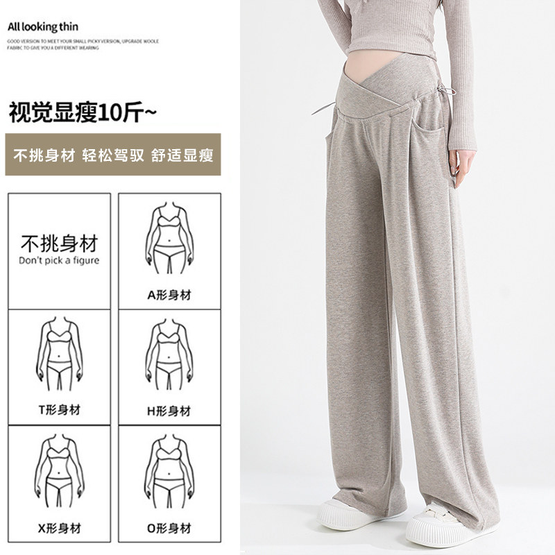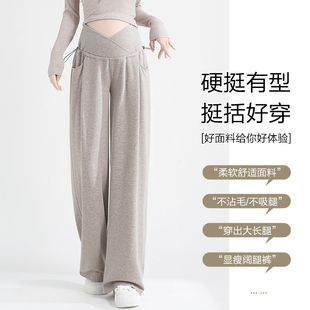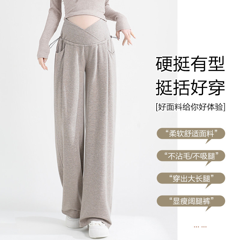 秋冬装 宽松交叉托腹直筒休闲长裤 子春秋2026外穿阔腿裤 浪莎孕妇裤
