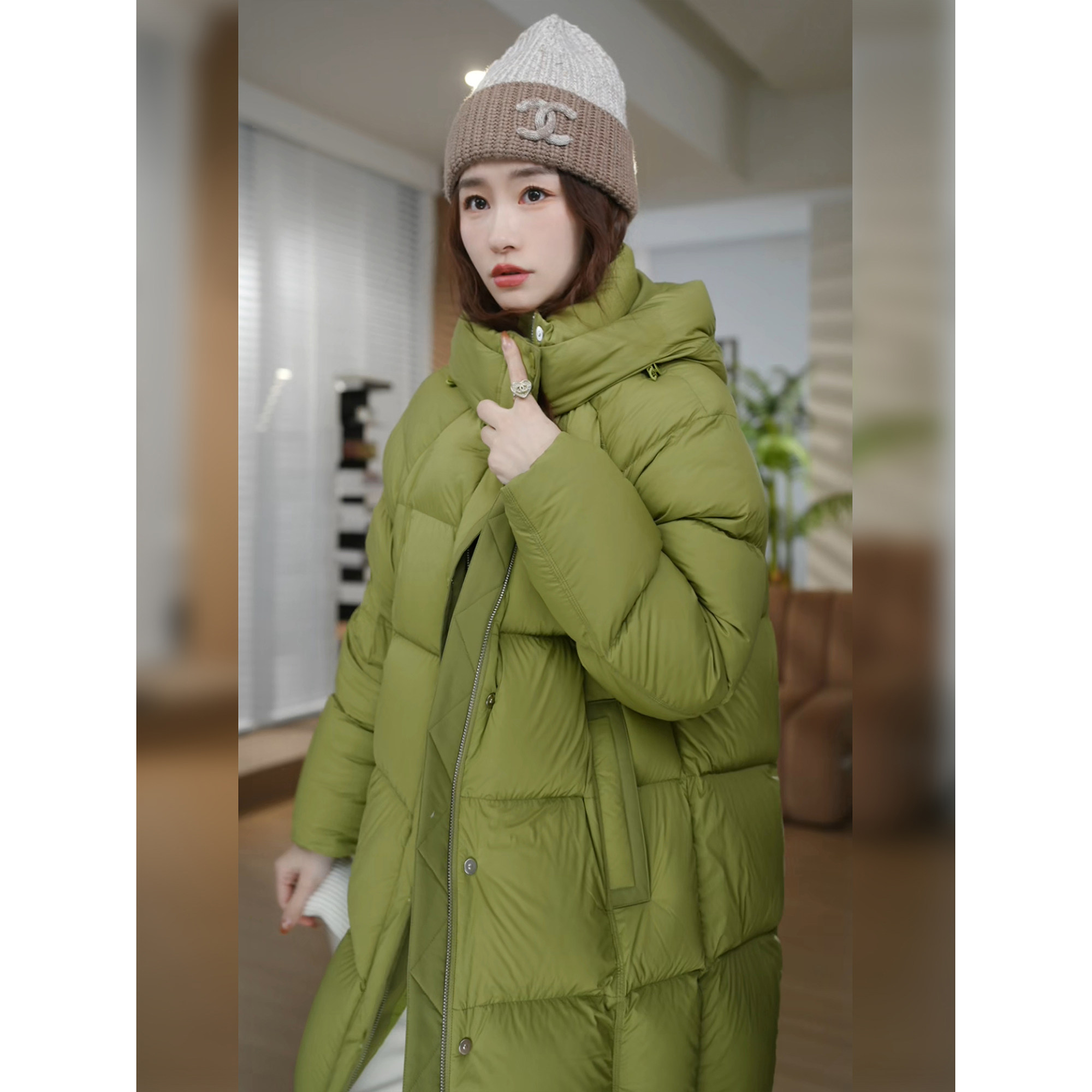 牛油果 AOMI 90白鹅绒连帽豆腐块泡芙羽绒服 HELA 邱莹莹