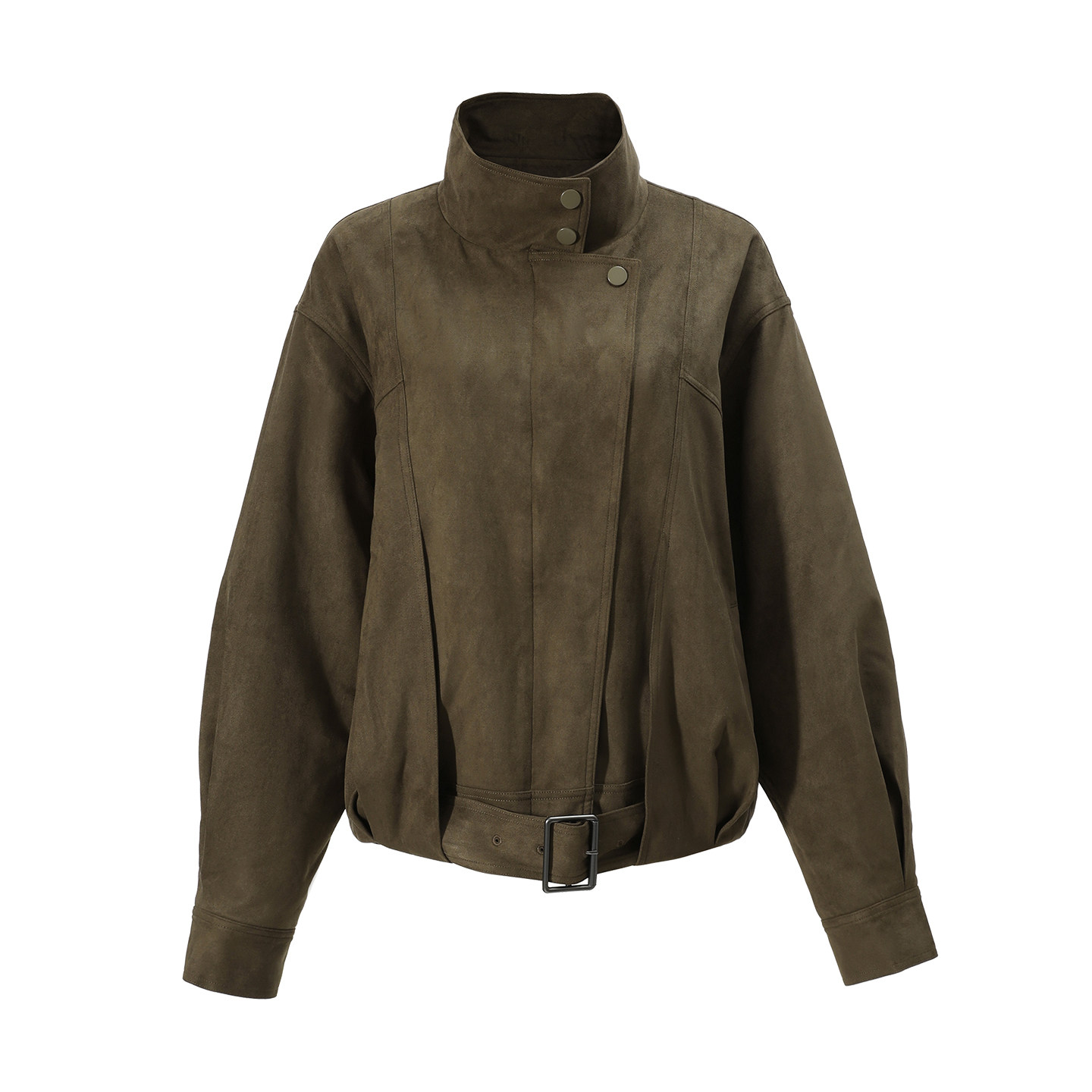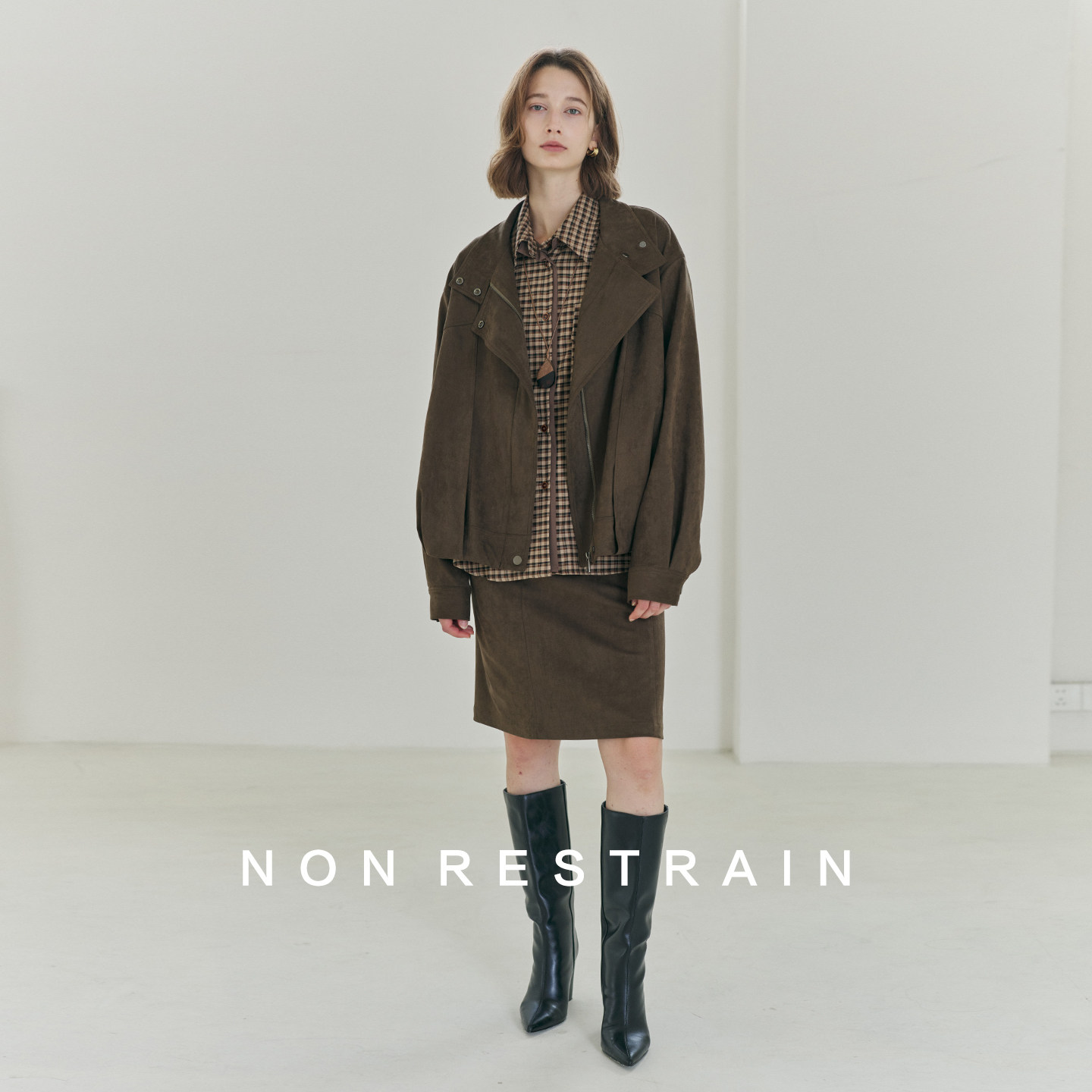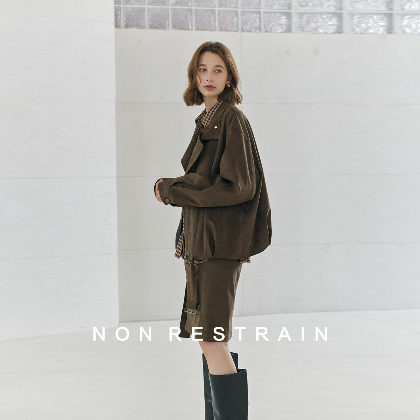 立领棉服外套女显瘦直筒半身裙套装 NON RESTRAIN复古麂皮腰带短款