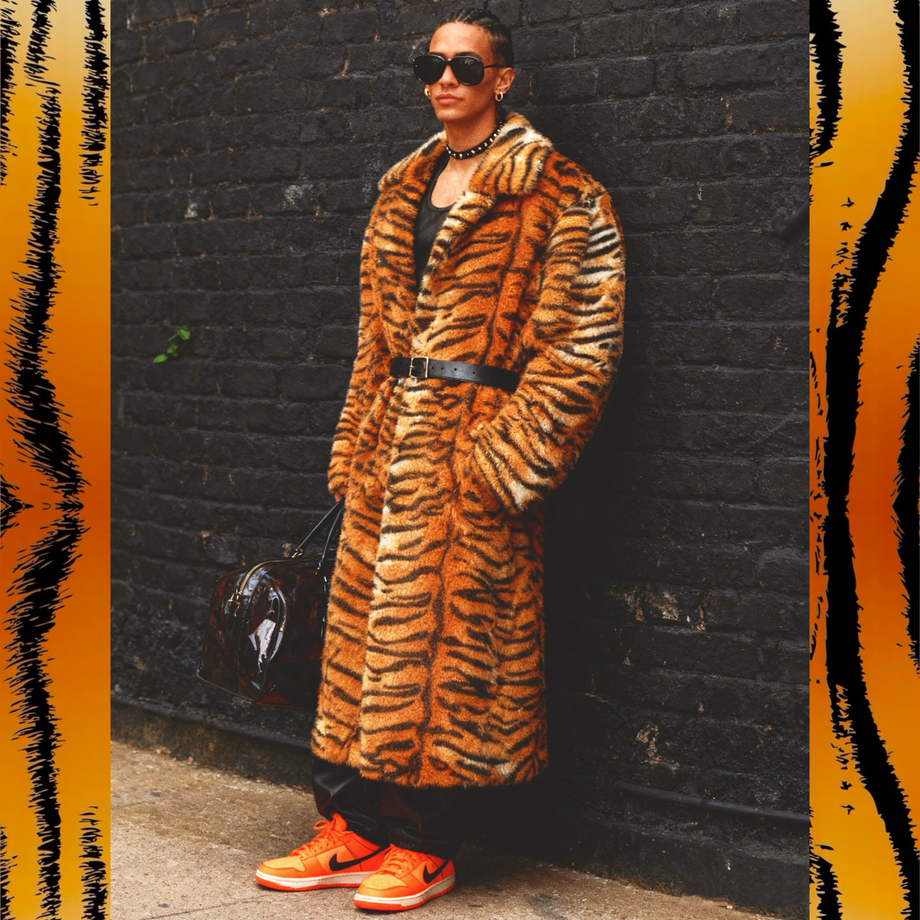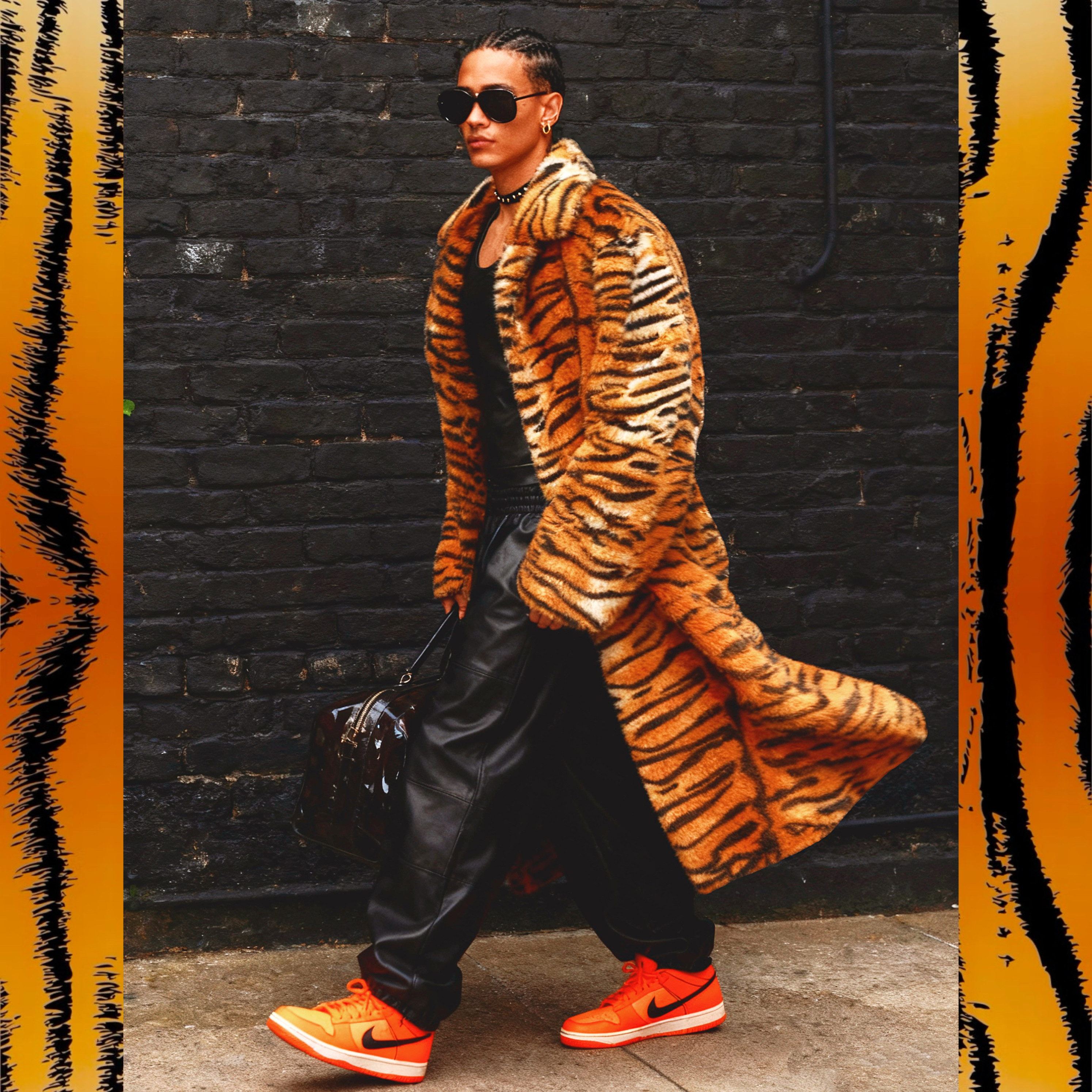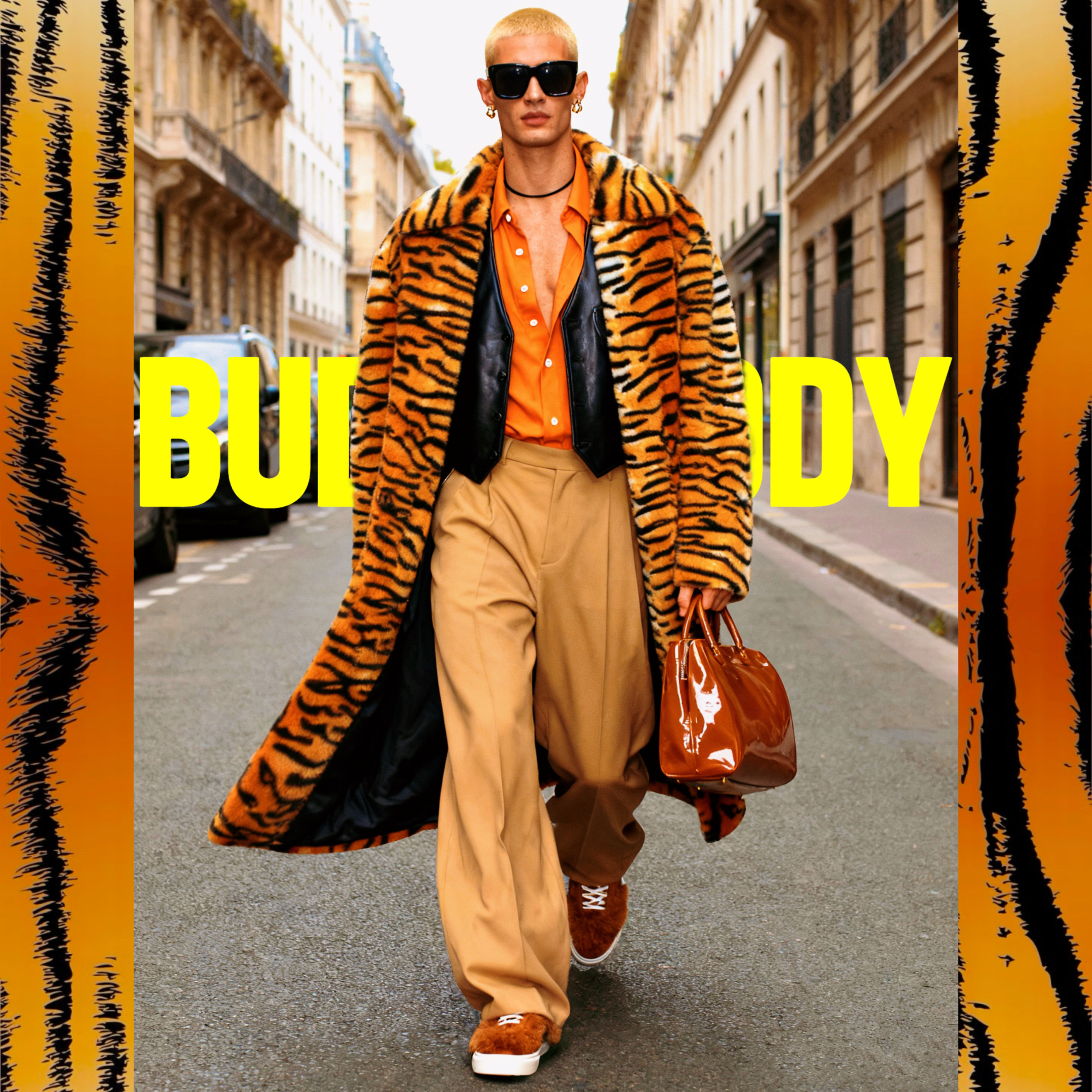 BUDDYBODY嘻哈街头宽松廓形仿貂绒虎纹豹纹超长环保毛皮草大衣