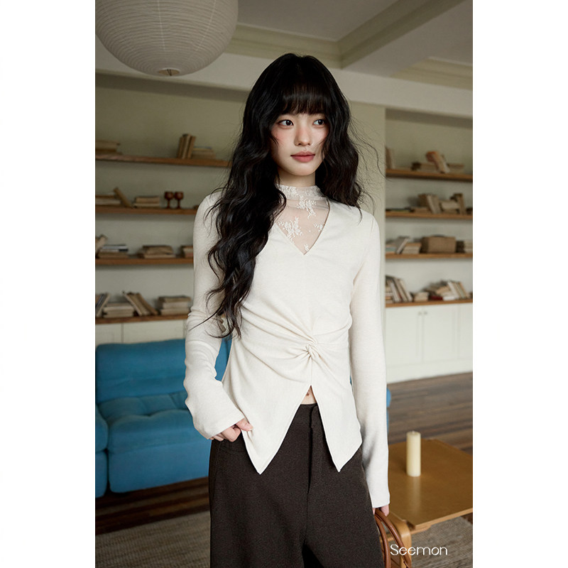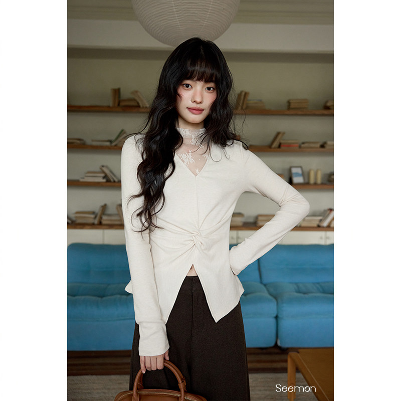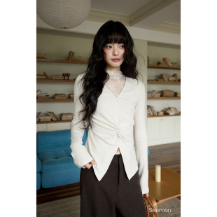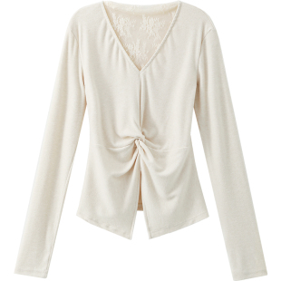 上衣设计感洋气小众蕾丝拼接长袖 韩系打底衫 冬季 t恤 清仓秒杀