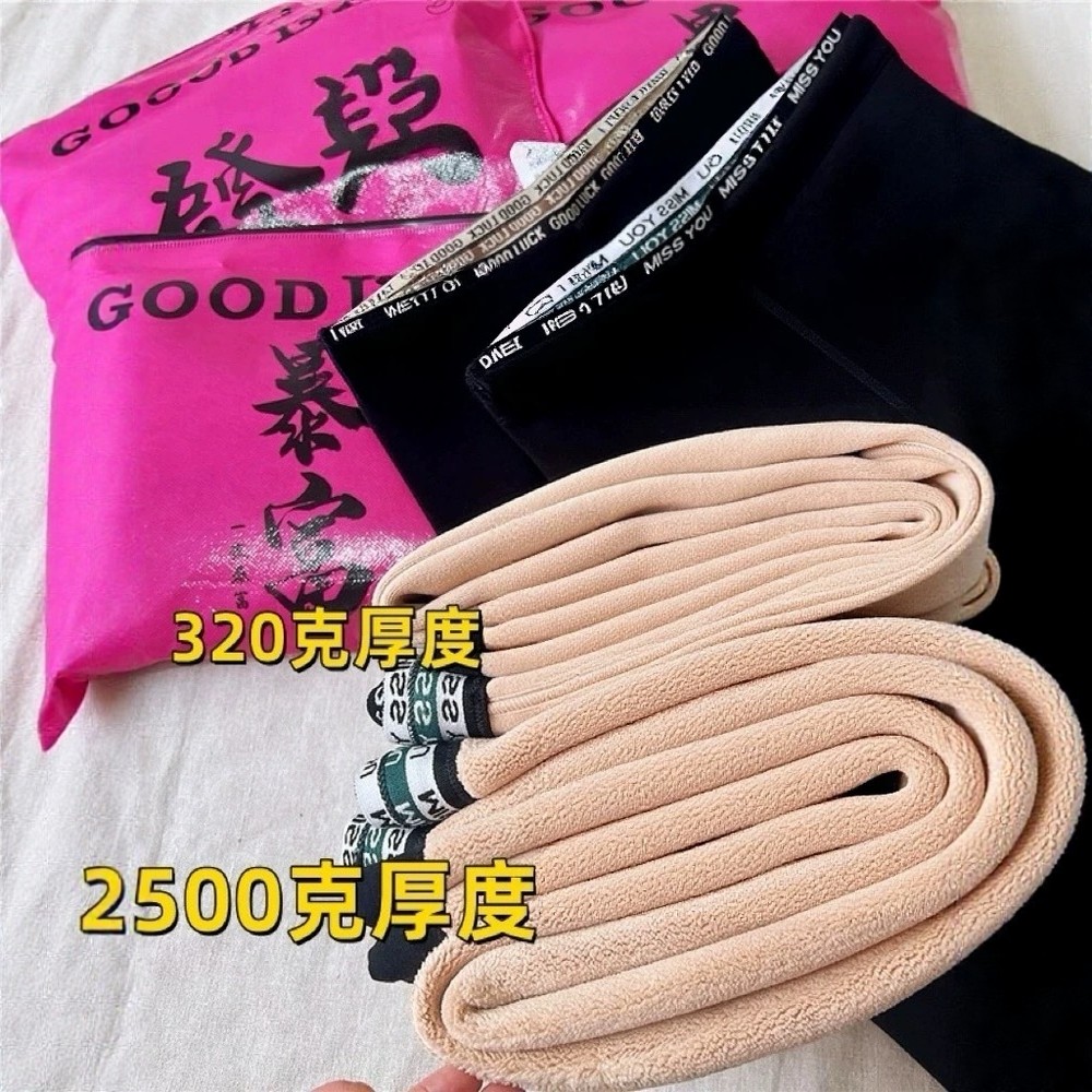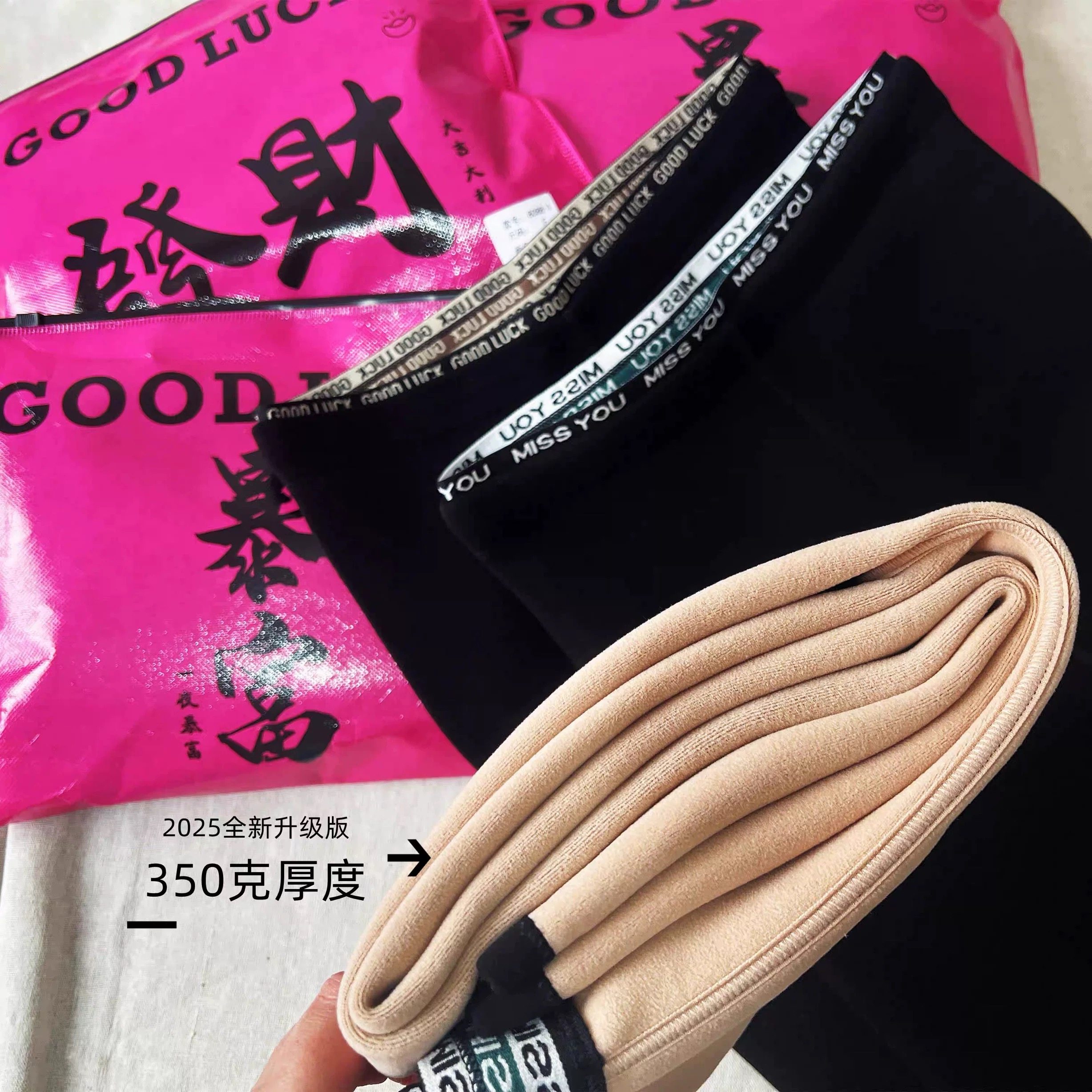 无缝高腰显瘦弹力腰字母 加厚灰色打底裤 正品 发财暴富蛋白绒云朵裤