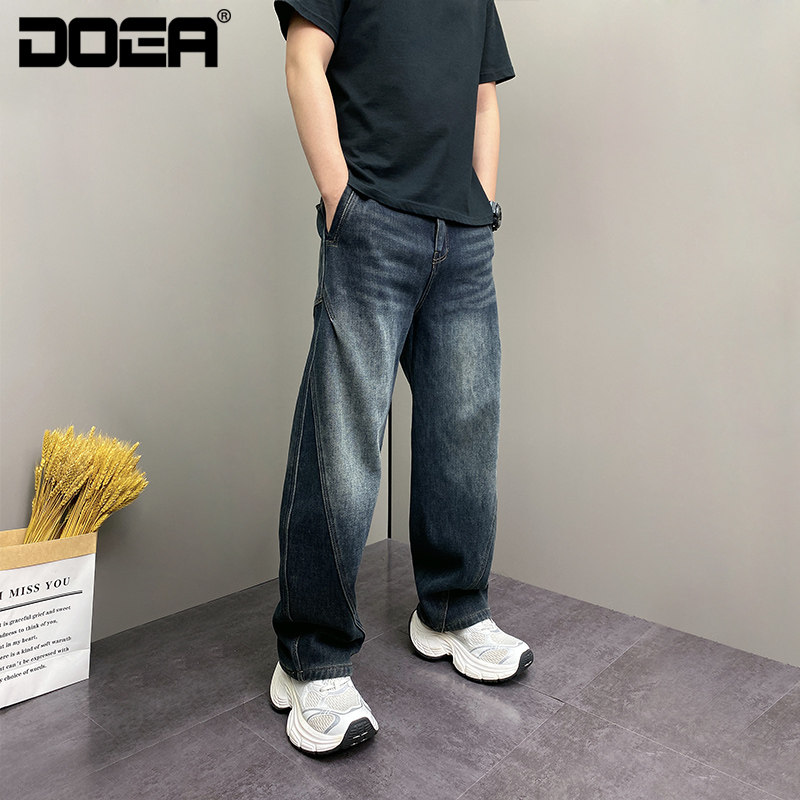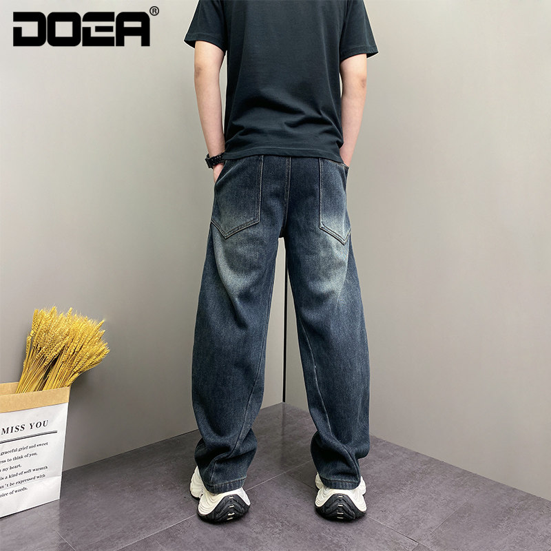 子宽松cleanfit痞帅休闲直筒长裤 男秋冬潮牌加绒阔腿裤 牛仔裤 美式