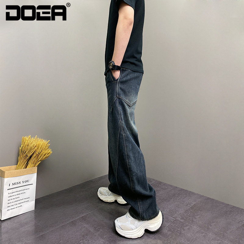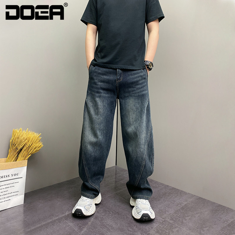 宽松直筒阔腿裤 新款 男士 加绒加厚弯刀牛仔裤 复古潮牌高端 2024冬季