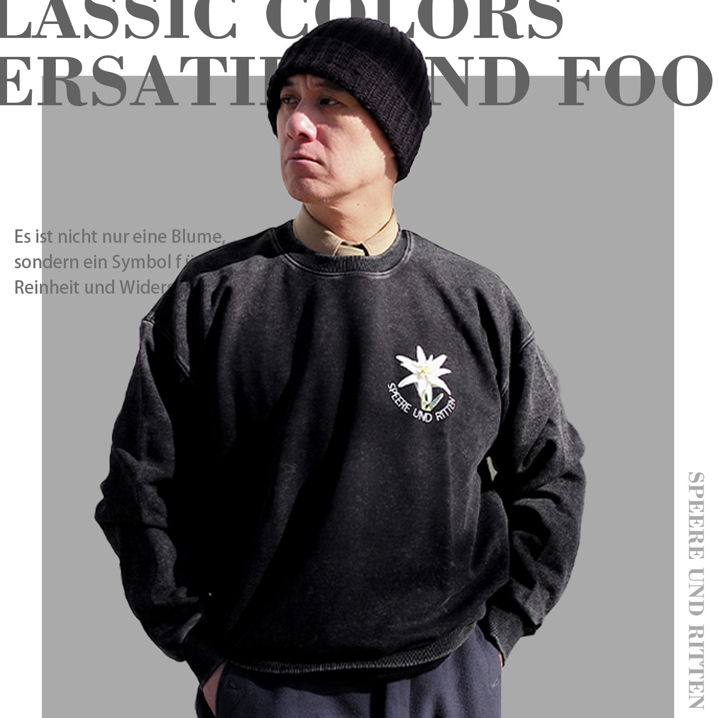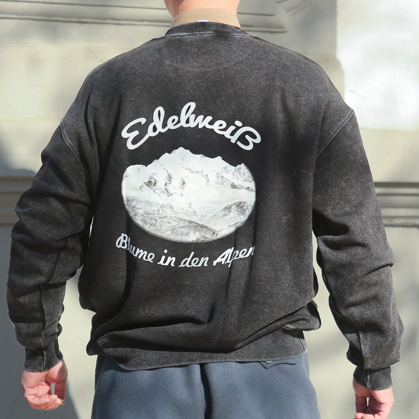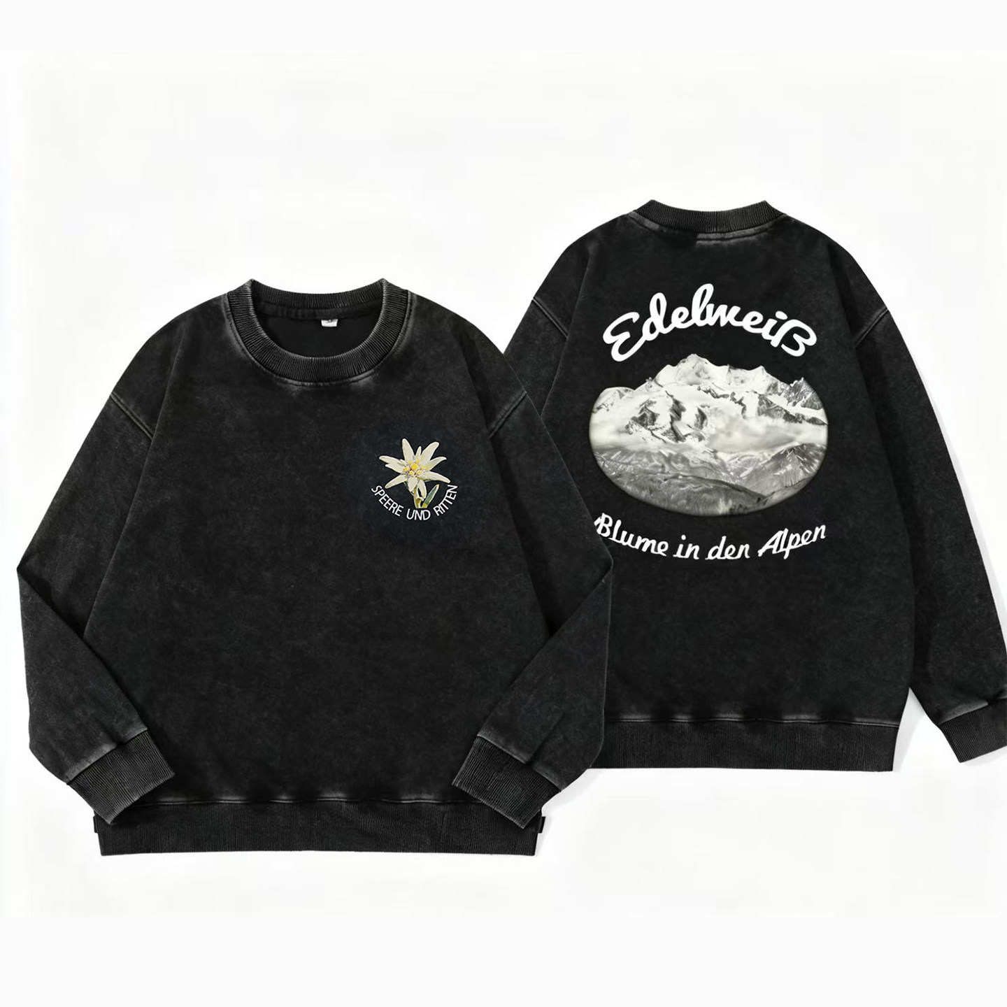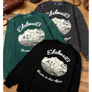 Vintage复古德国雪绒花重磅卫衣男美咔叽美式 印花T恤 春秋宽松男士