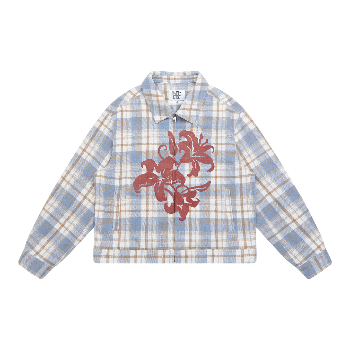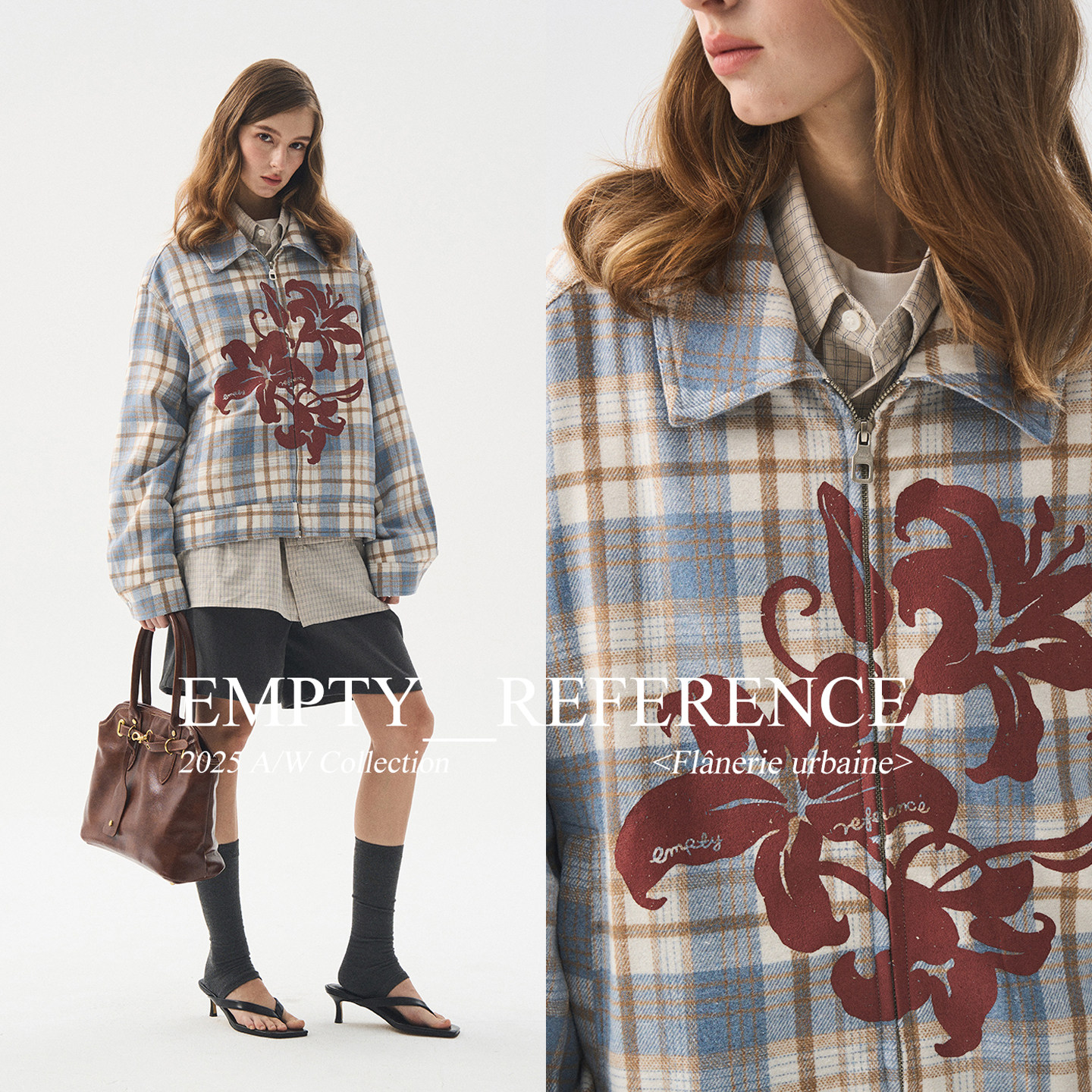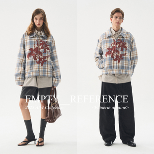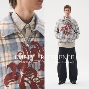 JIINOO美式 假两件情侣夹克上衣 复古格纹翻领拼接外套男秋季