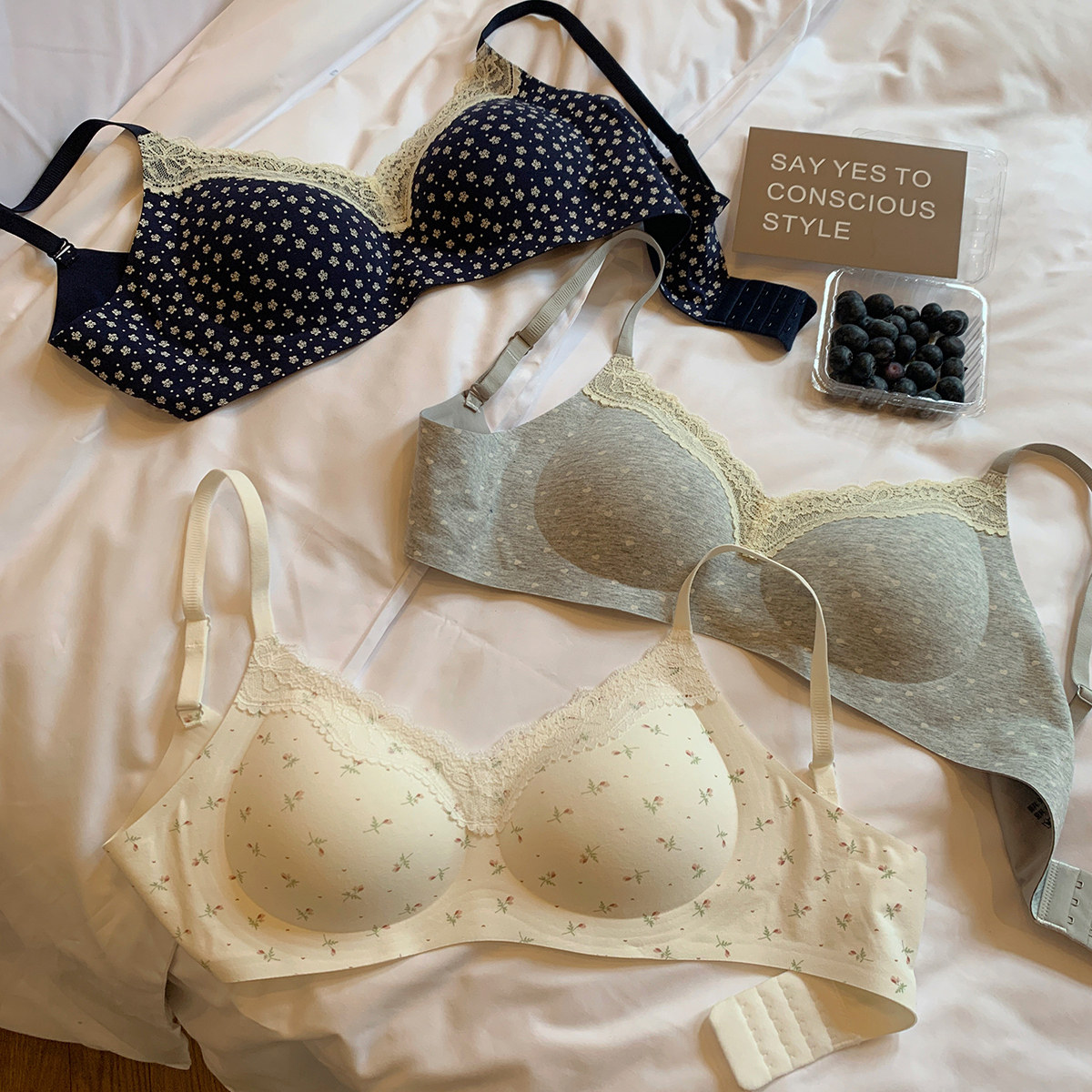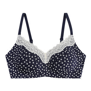 馨帮帮Bra 小清新蕾丝边碎花内衣女无钢圈舒适聚拢防下垂无痕文胸