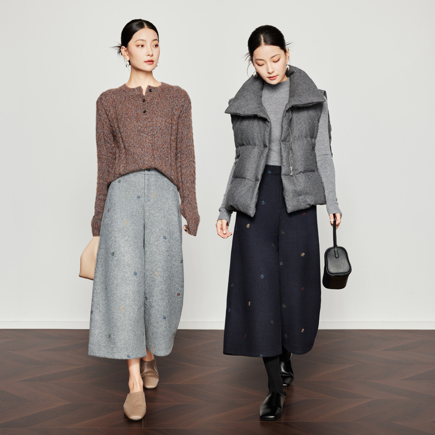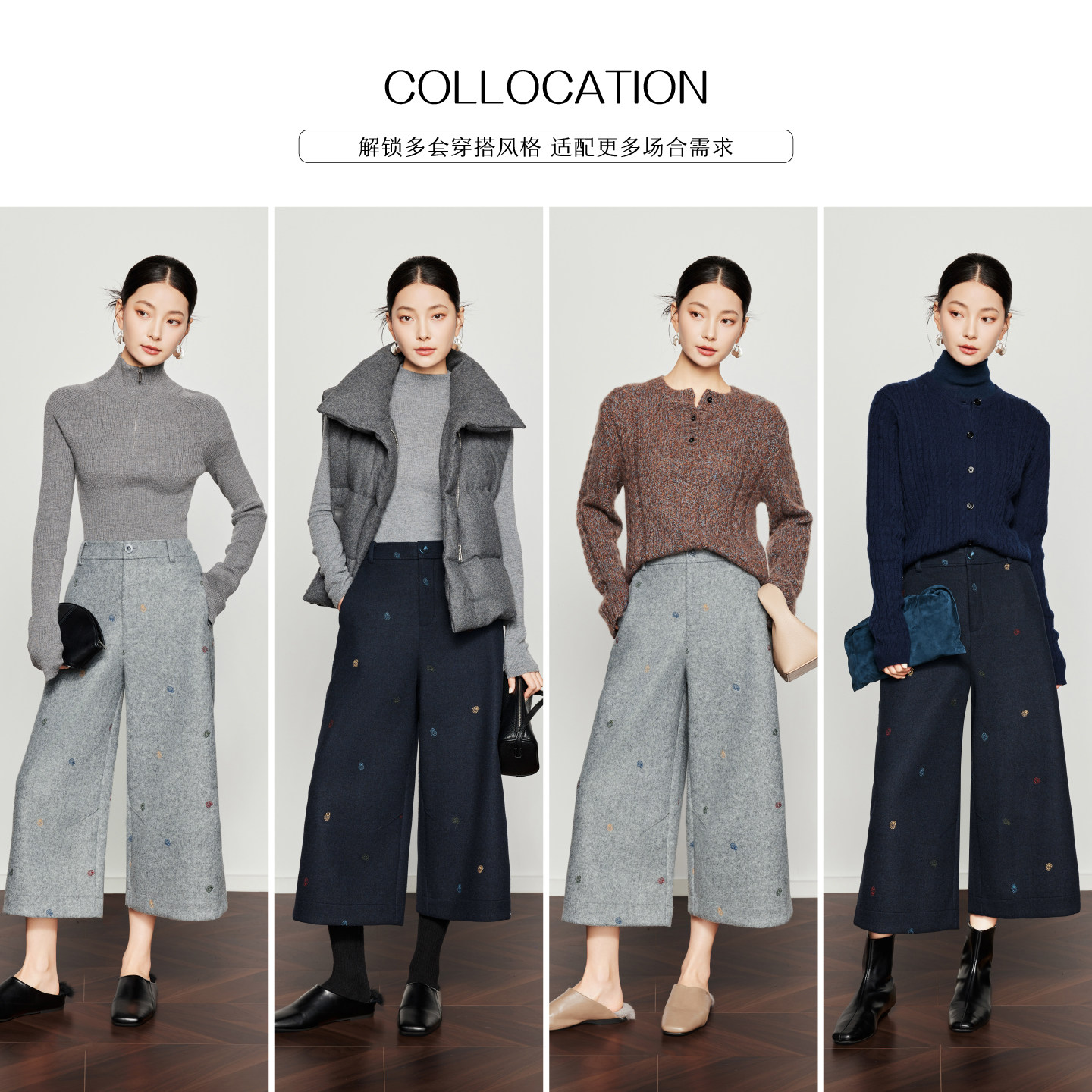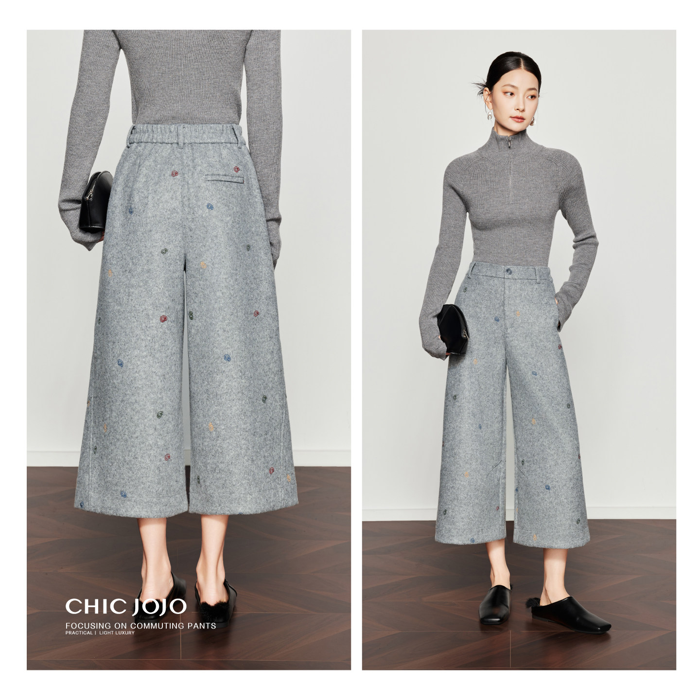 女25冬新款 CHICJOJO灰色休闲裤 直筒宽松刺绣八分裤 软糖缪斯