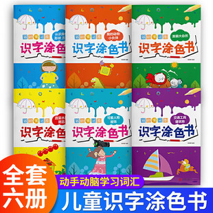 6岁儿童简笔画绘画本大全入门美术涂颜色 全6册我 画书动脑 第一本识字涂色书幼儿园启蒙早教涂鸦宝宝描画书0 正版