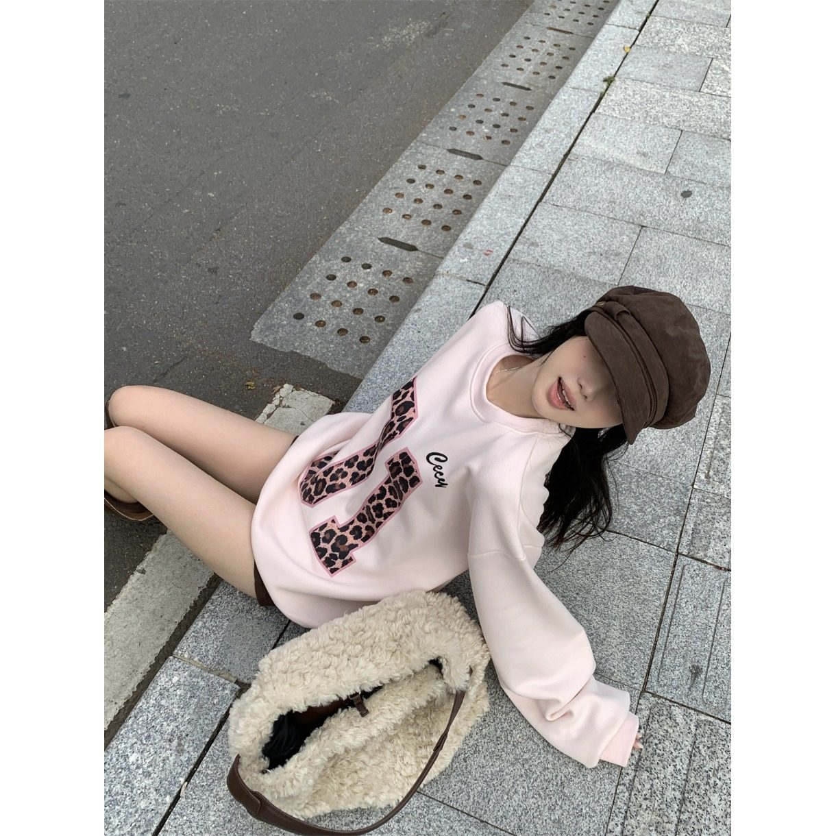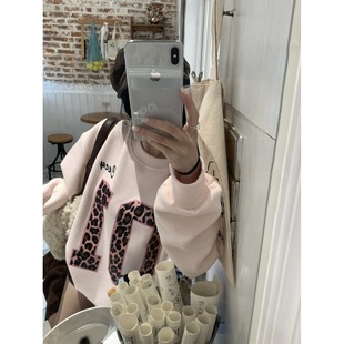 慵懒豹纹数字印花宽松长袖 秋冬美式 加绒卫衣 BLACK 黑奶酪