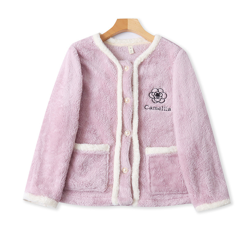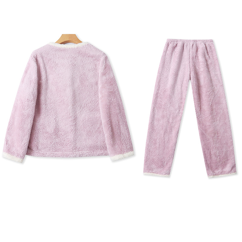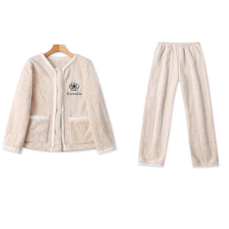 睡衣松紧腰睡裤 H856时尚 半圆领珊瑚绒开衫 摇粒绒家居服套装 女装