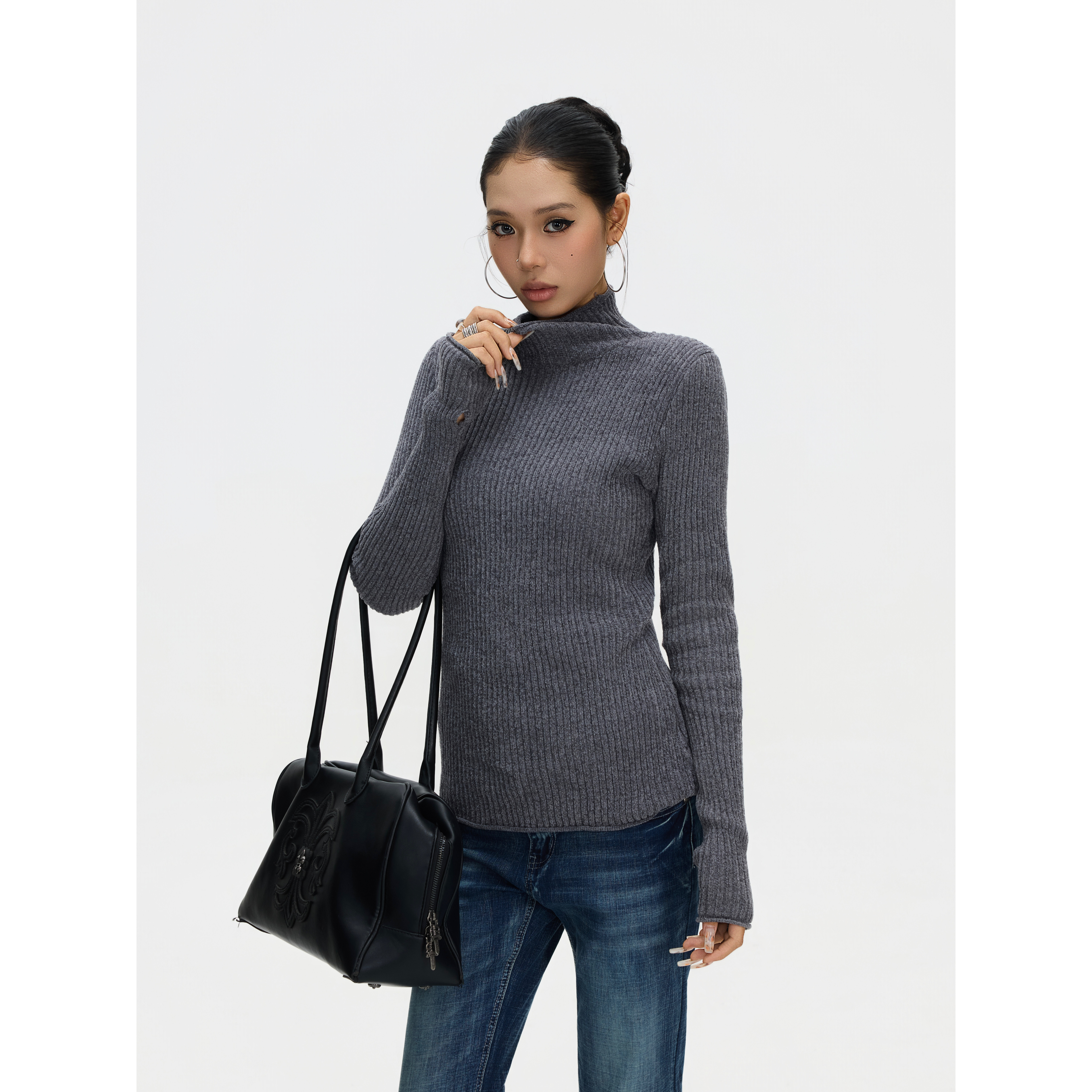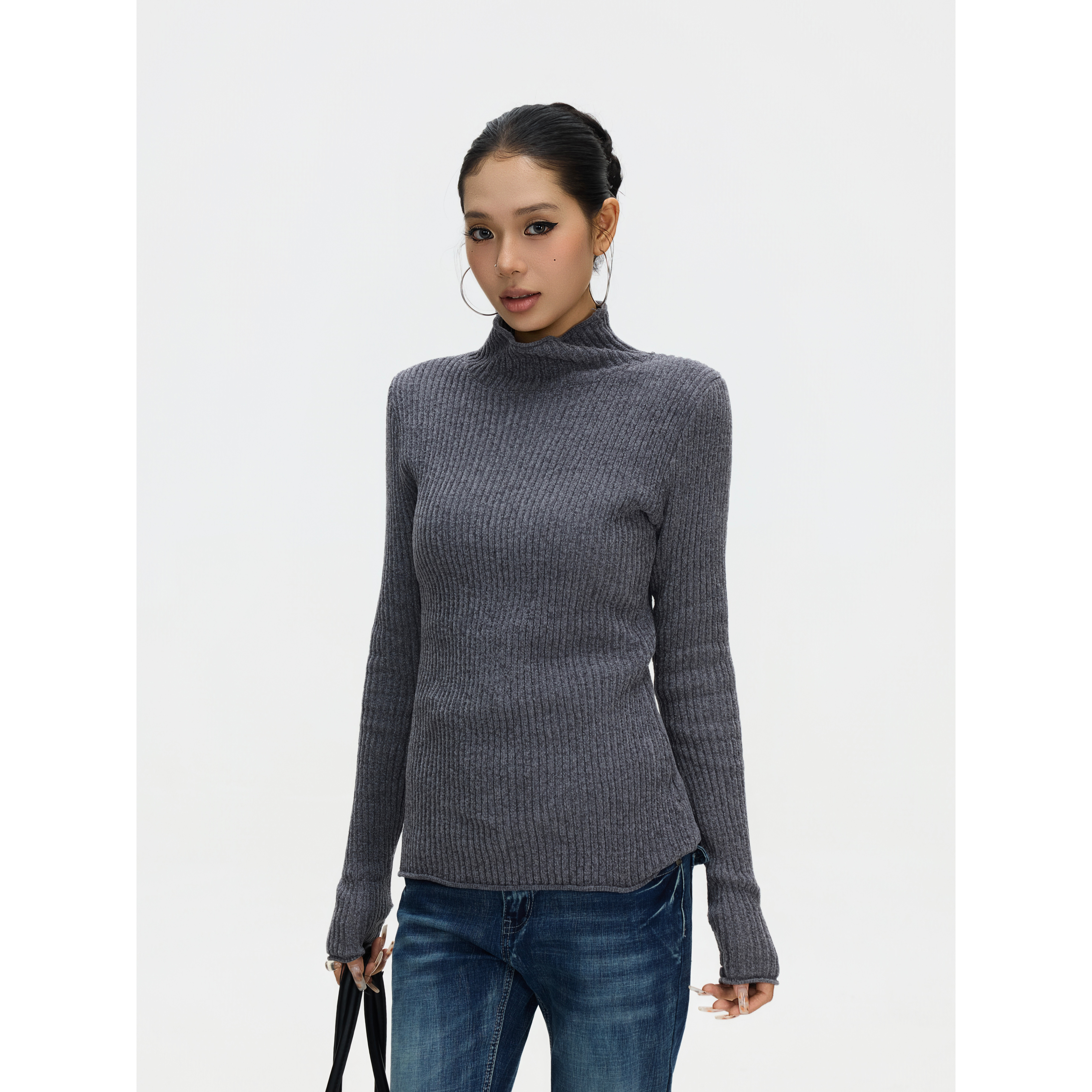 美式 百搭打底衫 复古高领毛衣女修身 长袖 上衣 显瘦内搭针织衫 F383