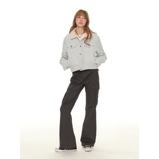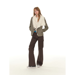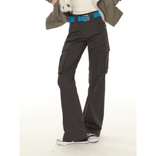 裤 复古大口袋休闲工装 女冬季 新款 子 UNRETRO 低腰显瘦微喇裤 美式