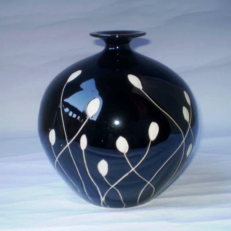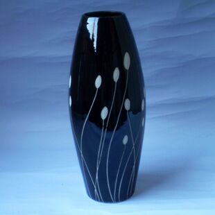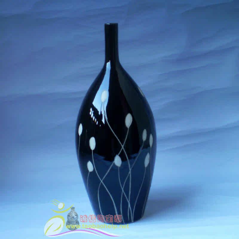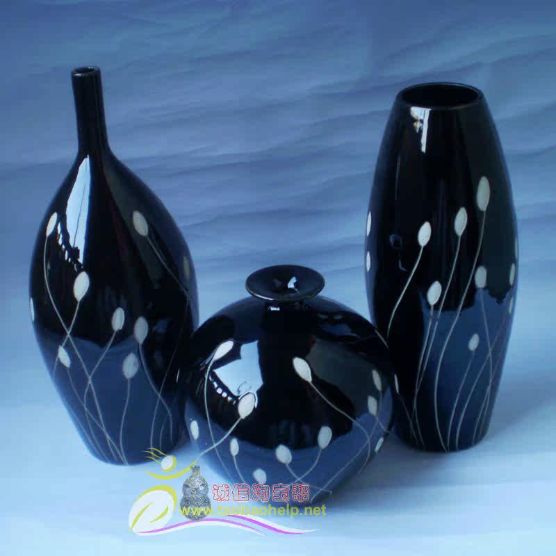 居家装 现代时尚 花插 陶瓷黑白手绘雕刻高档花瓶 饰品 简约三件套