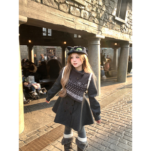 a02黑猫系列黑色假两件连衣裙女2025新款 宽松设计感卫衣裙子 秋季