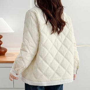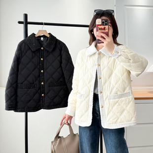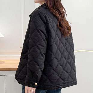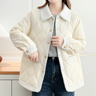小香风冬季 保暖棉衣加肥加大胖mm宽松显瘦夹棉外套不臃肿菱格上衣