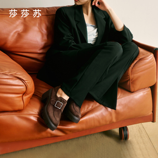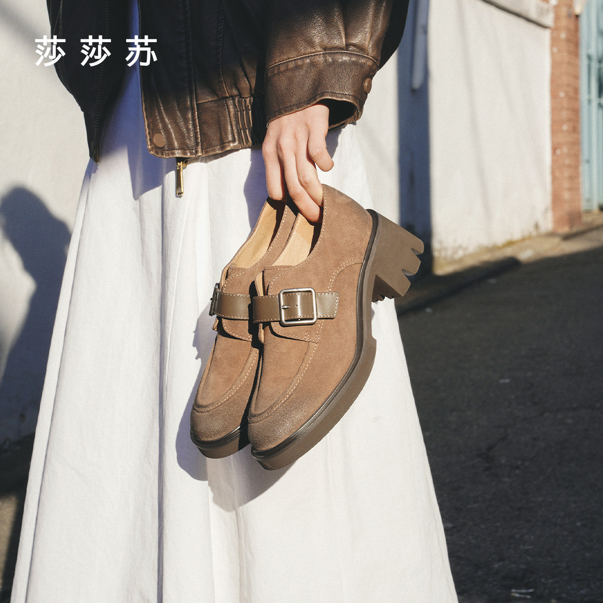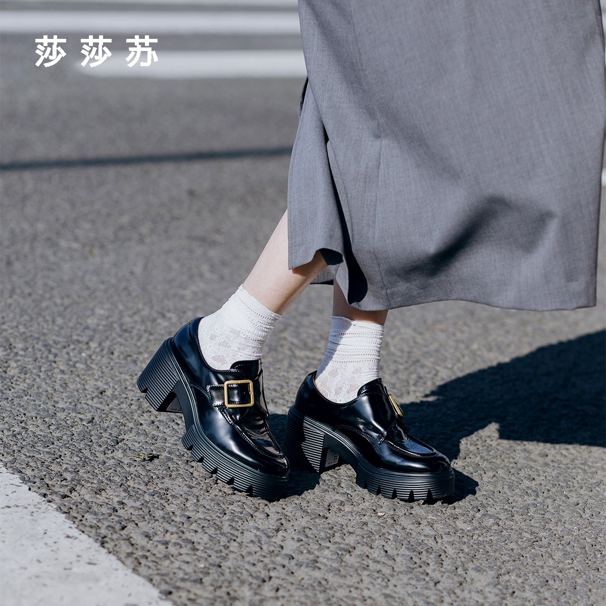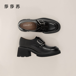 小皮鞋 莎莎苏2025年秋冬新款 伯德小姐方扣英伦厚底乐福鞋