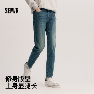 子通勤基础百搭春长裤 森柔牛仔 显瘦小脚裤 男修身 弹力 森马牛仔裤