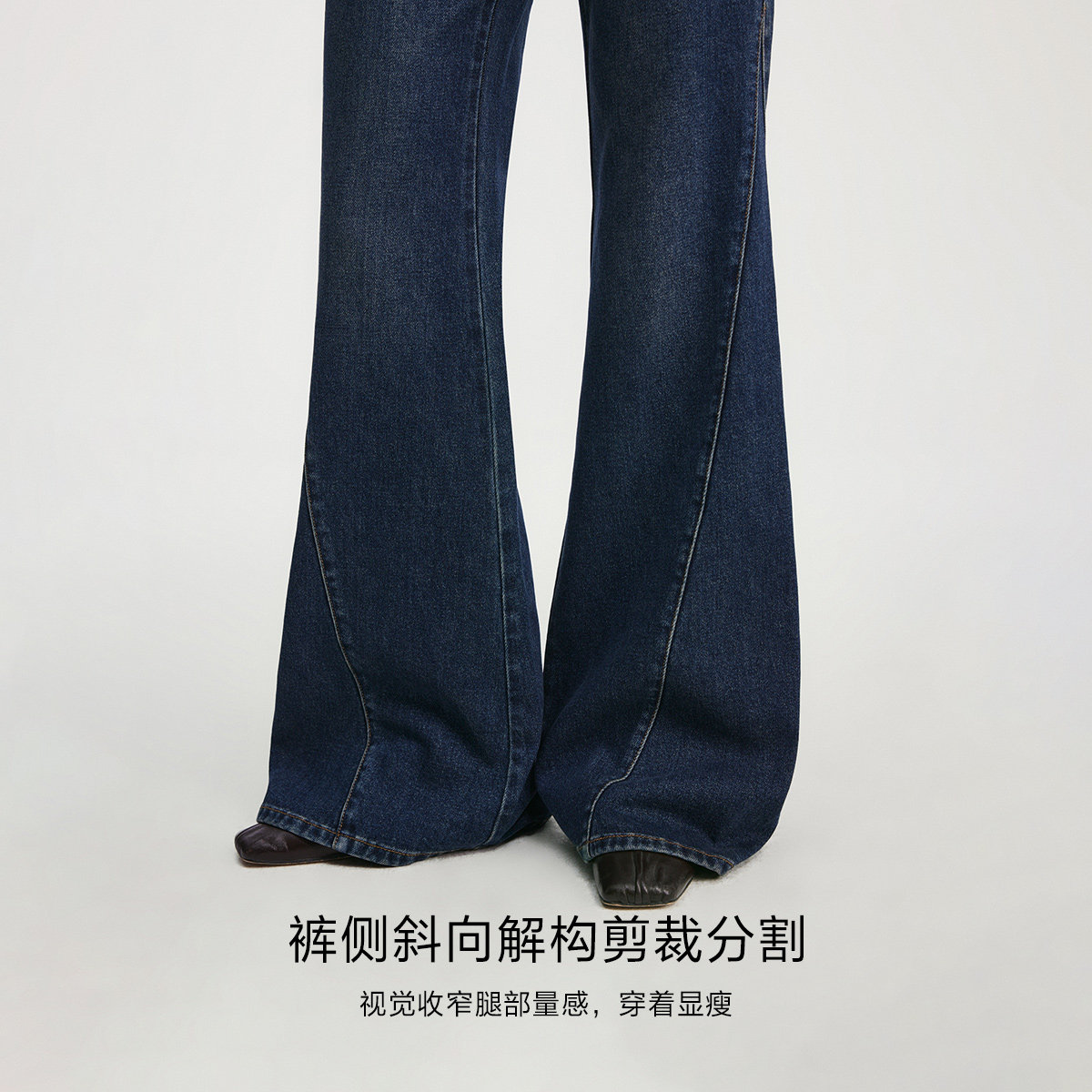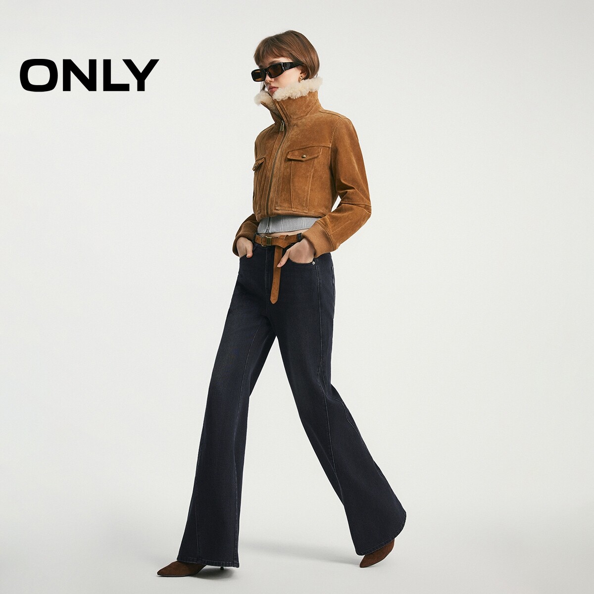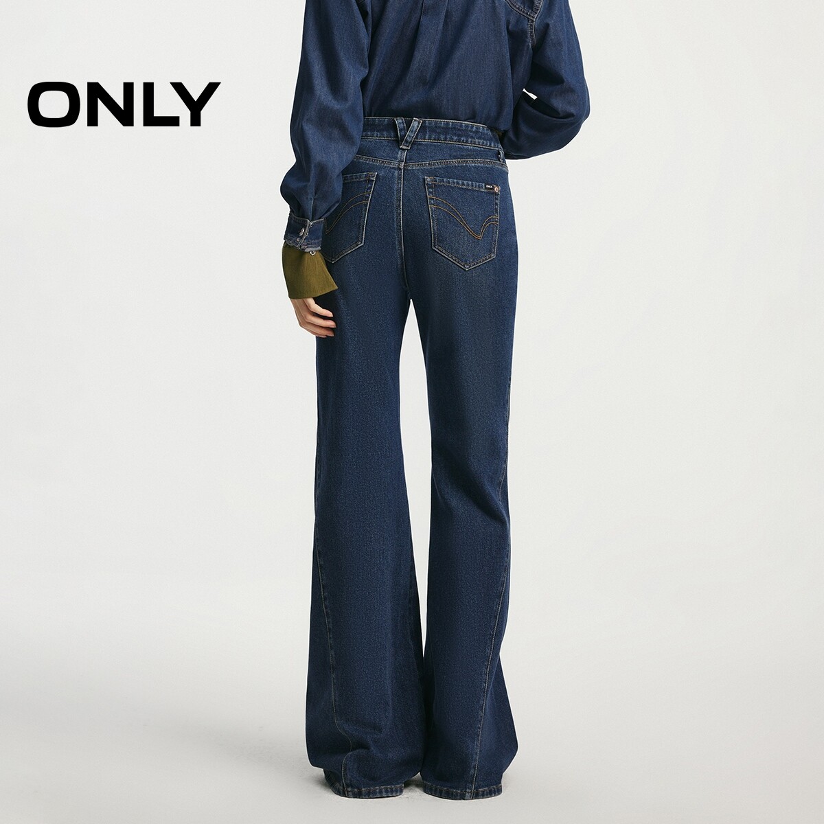 牛仔裤 腰带提臀约克线剪裁斜裁宽大喇叭裤 女 新款 ONLY2026春季