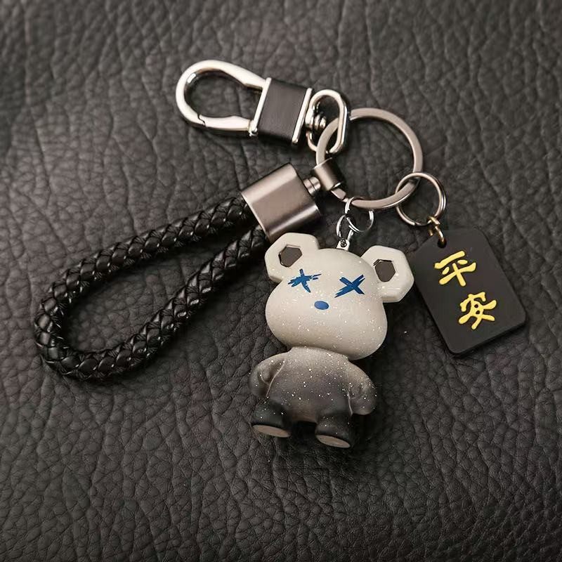 高档小熊男女钥匙链卡通可爱星空汽车钥匙扣挂件钥匙圈锁匙扣编织