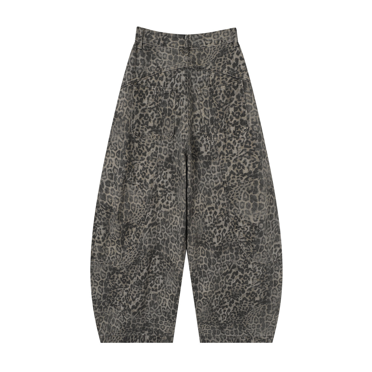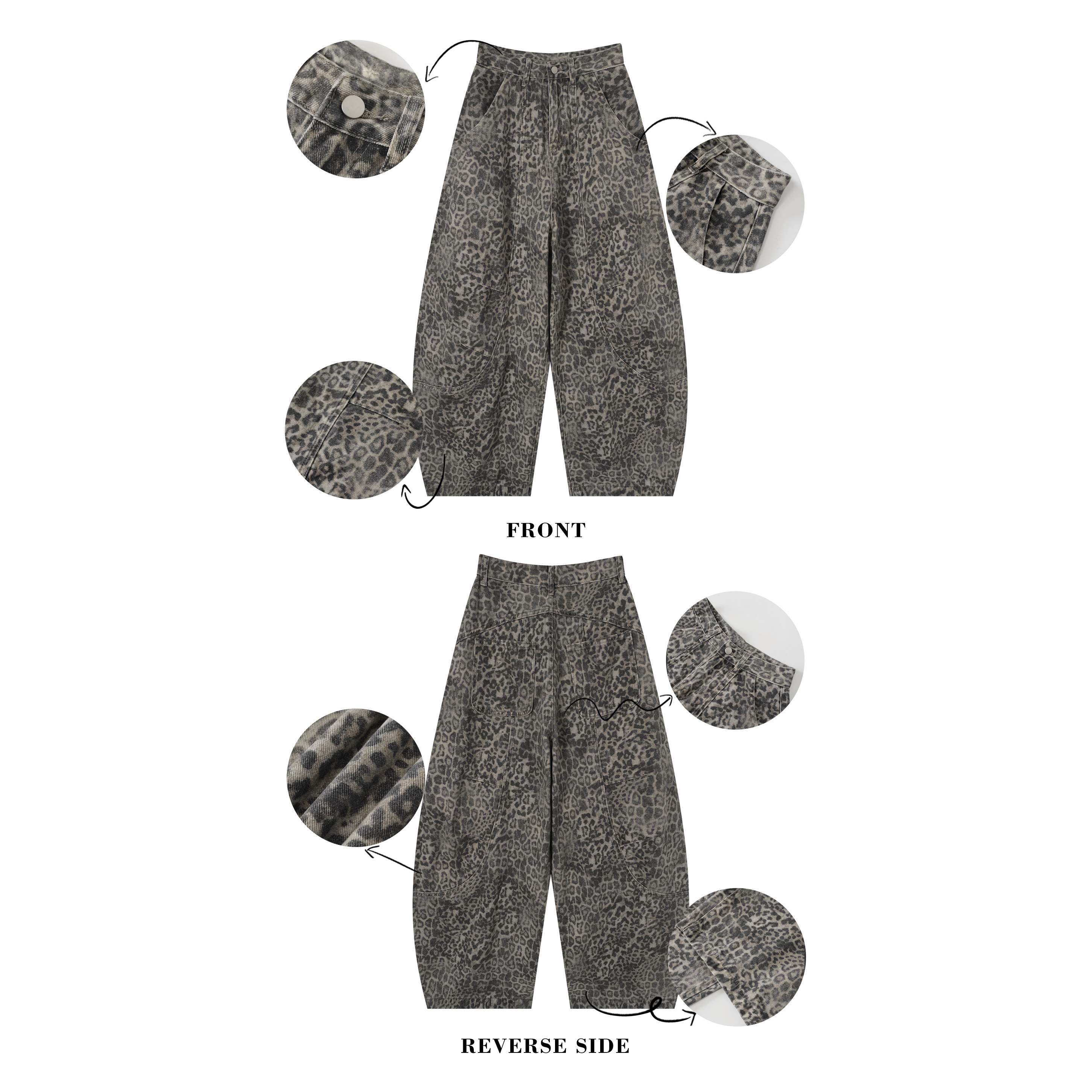 复古做旧豹纹磨毛阔型弯刀长裤 IAMCPLUS 2025AW