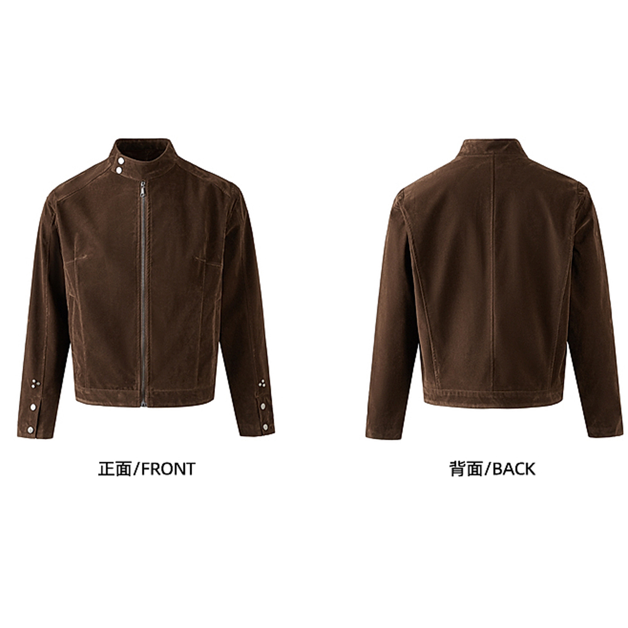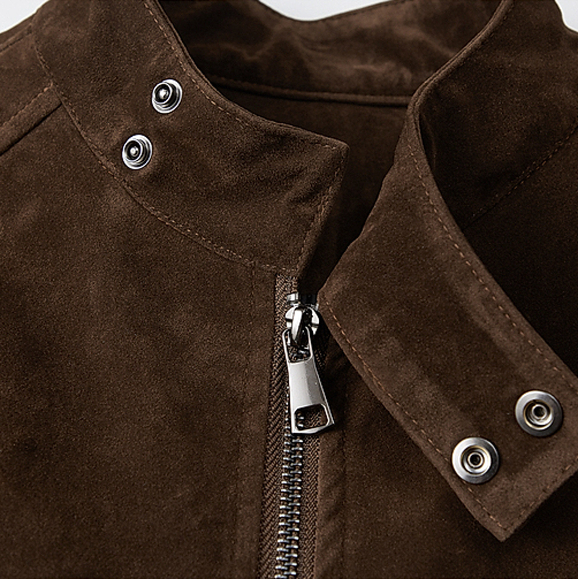 DUSK美式 复古美拉德哈灵顿夹克女春秋情侣麂皮绒外套立领韩系夹克