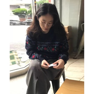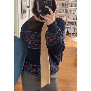 节日氛围感宽松休闲上衣 新款 巴卜Studio 红色毛衣不含毛领冬季