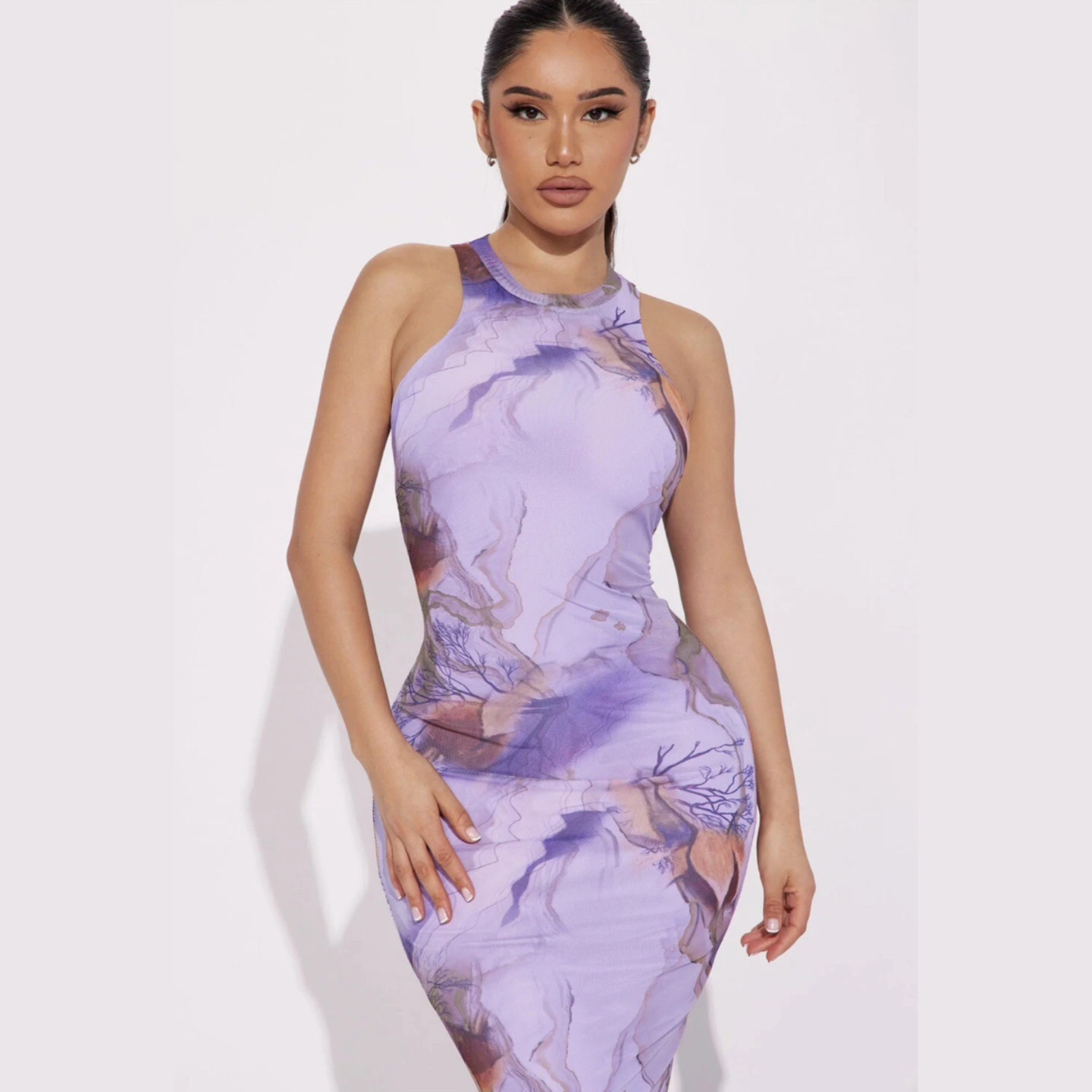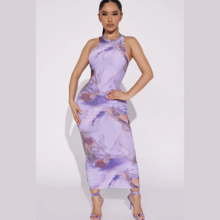 长款 美单性感辣妹浪漫度假风印花立领无袖 连衣裙 小确幸 葡萄miki