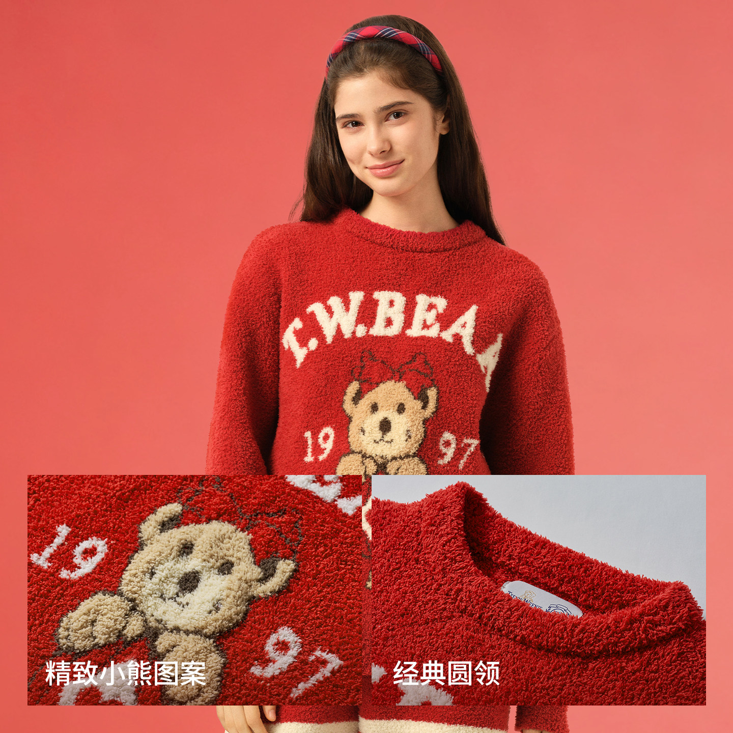芬腾女士睡衣秋冬季 加绒加厚法兰绒抗静电家居服 珊瑚绒布朗熊套装