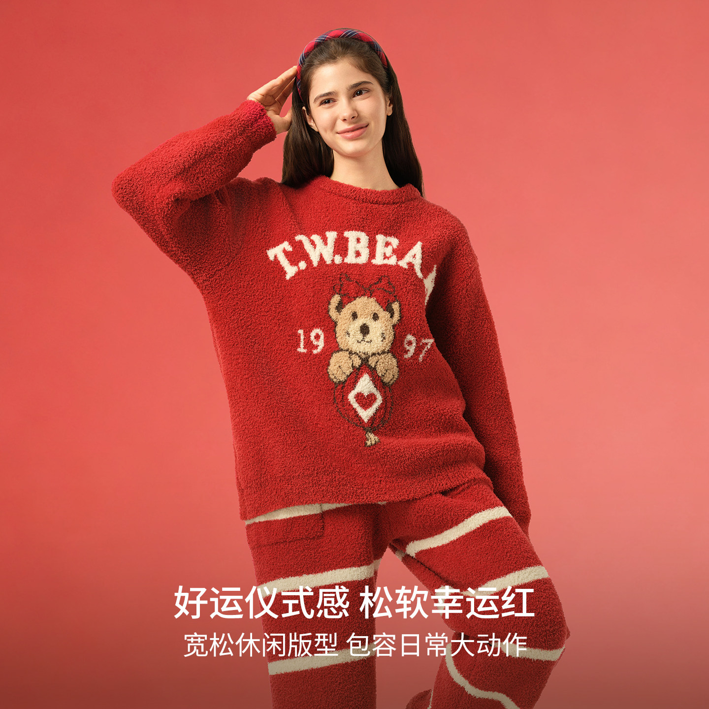 家居服套装 纯棉刺绣长袖 秋季 TeenieWeenie小熊情侣睡衣女2025新款