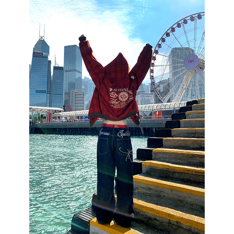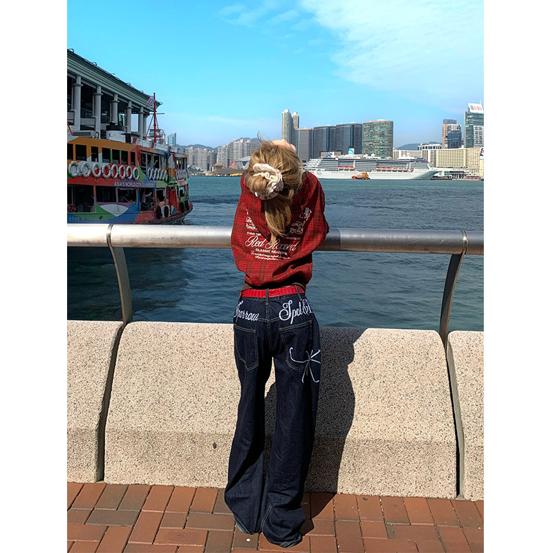 男女宽松百搭潮流百搭直筒长裤 复古设计感字母刺绣牛仔裤 美式 JMJ