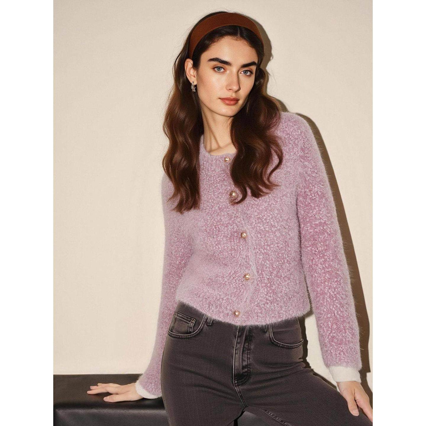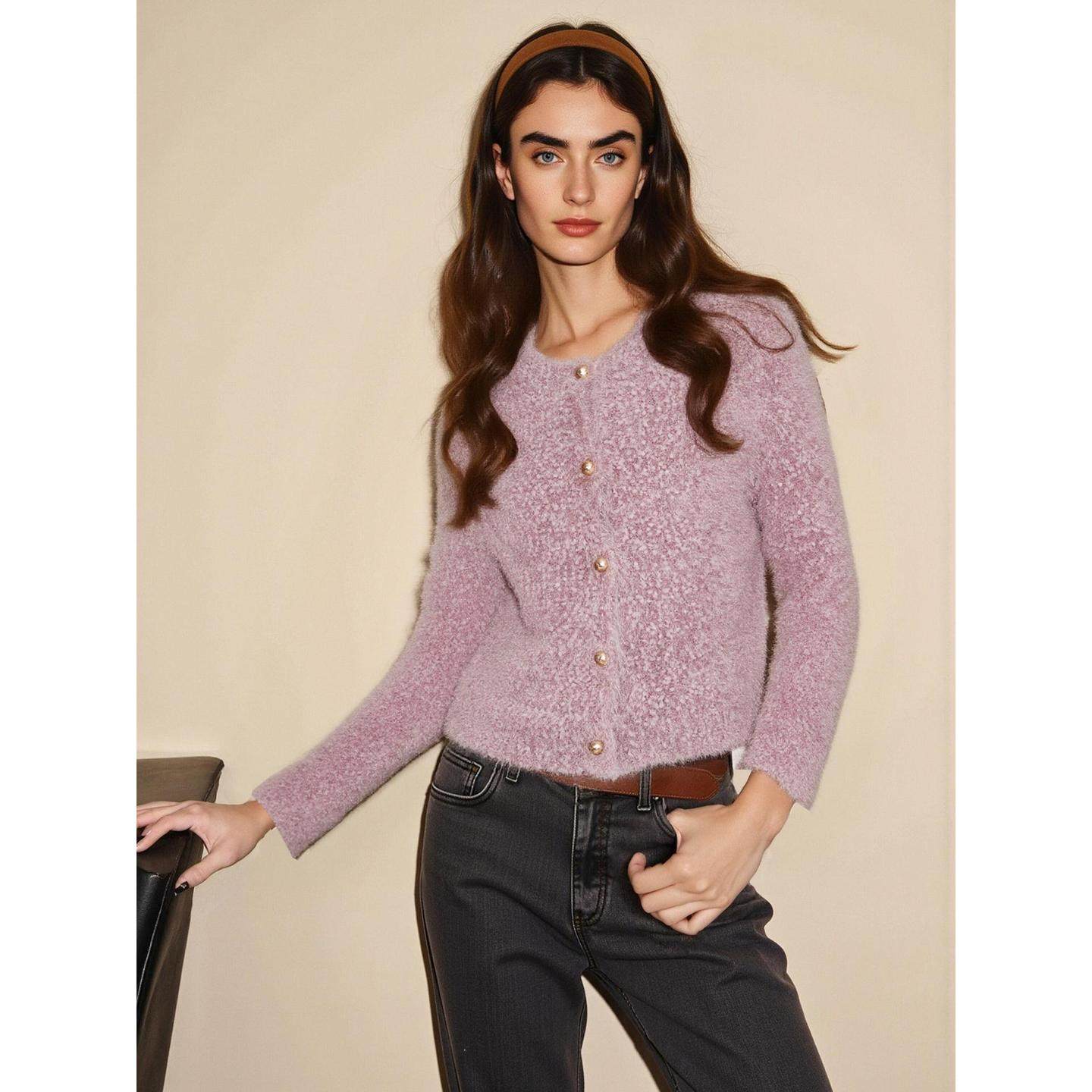 毛茸茸针织衫 Basic 短款 百家好粉色毛毛外套女2025秋冬新款 House