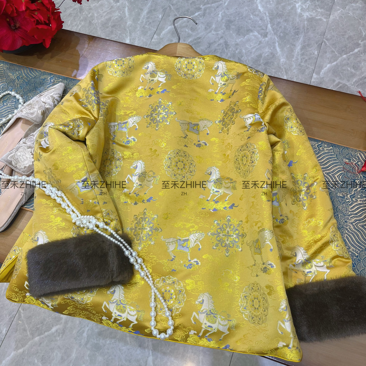 阅悦冬上新新中式 人丝织锦祥云短外套t2071