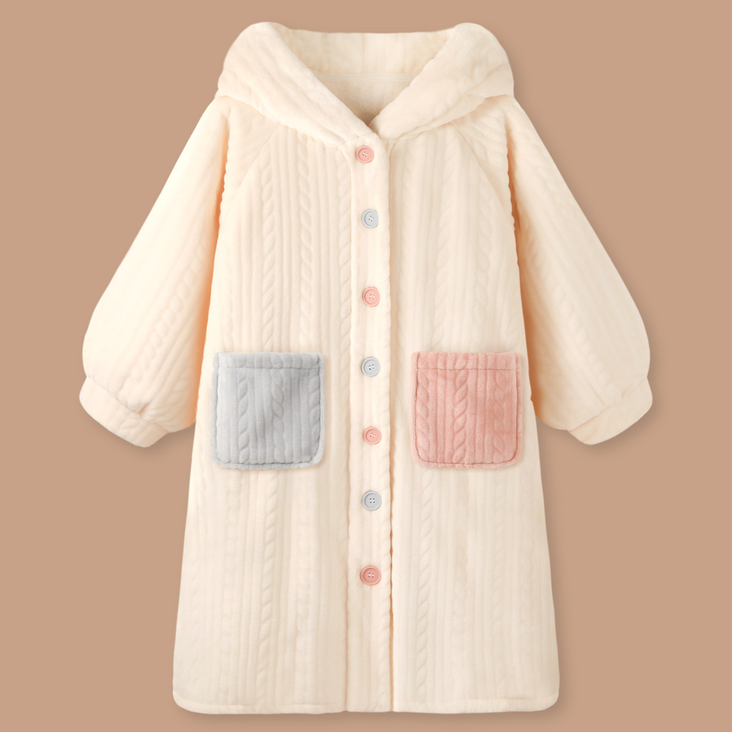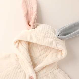 加厚法兰绒连帽中长款 睡袍女冬季 浴袍家居服秋冬睡衣 小丑兔兔
