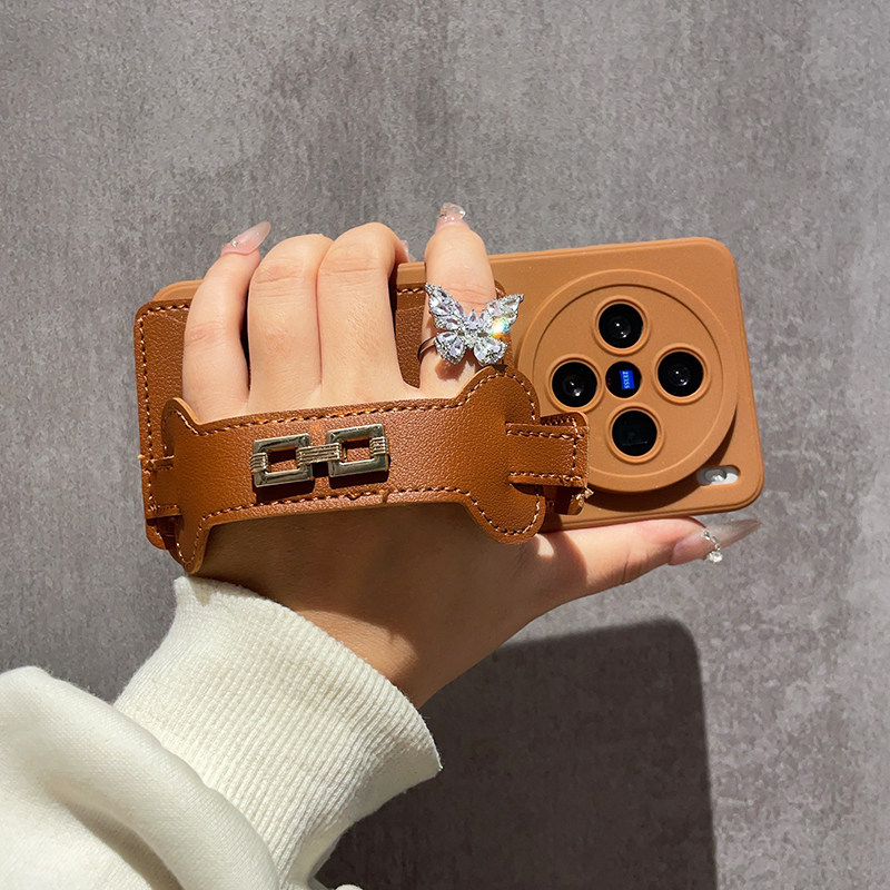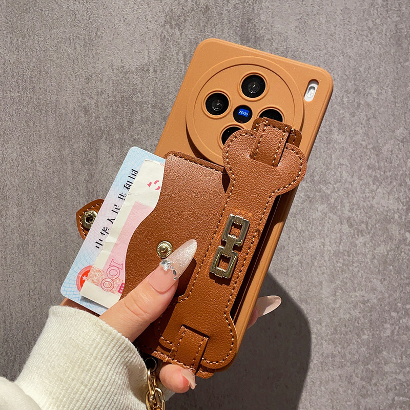 美拉德棕色腕带零钱卡包适用vivoX300手机壳X200Pro斜跨X100S背带X90高级感X80软壳全包X70防摔X60外壳ultra