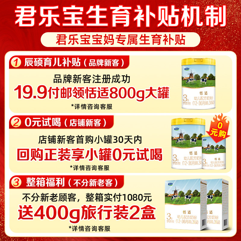 12个月婴幼儿配方奶粉170g 复购送2小罐 君乐宝旗舰店恬适2段6