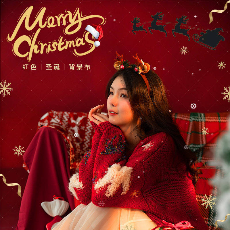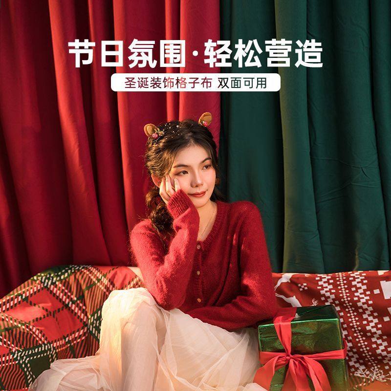 圣诞背景布网红直播写真装 饰墨绿酒红纯色挂布摄影儿童拍照小道具