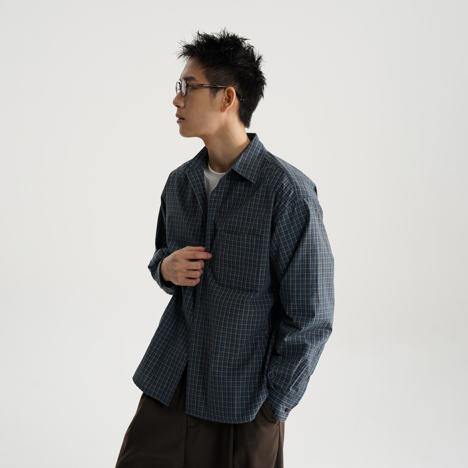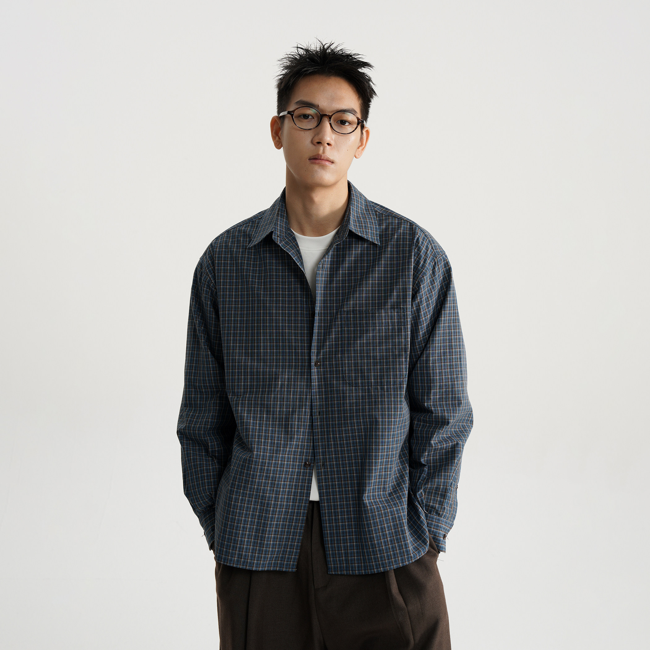 衬衫 简约宽松百搭长袖 男女 复古蓝棕格纹 AWT25AW