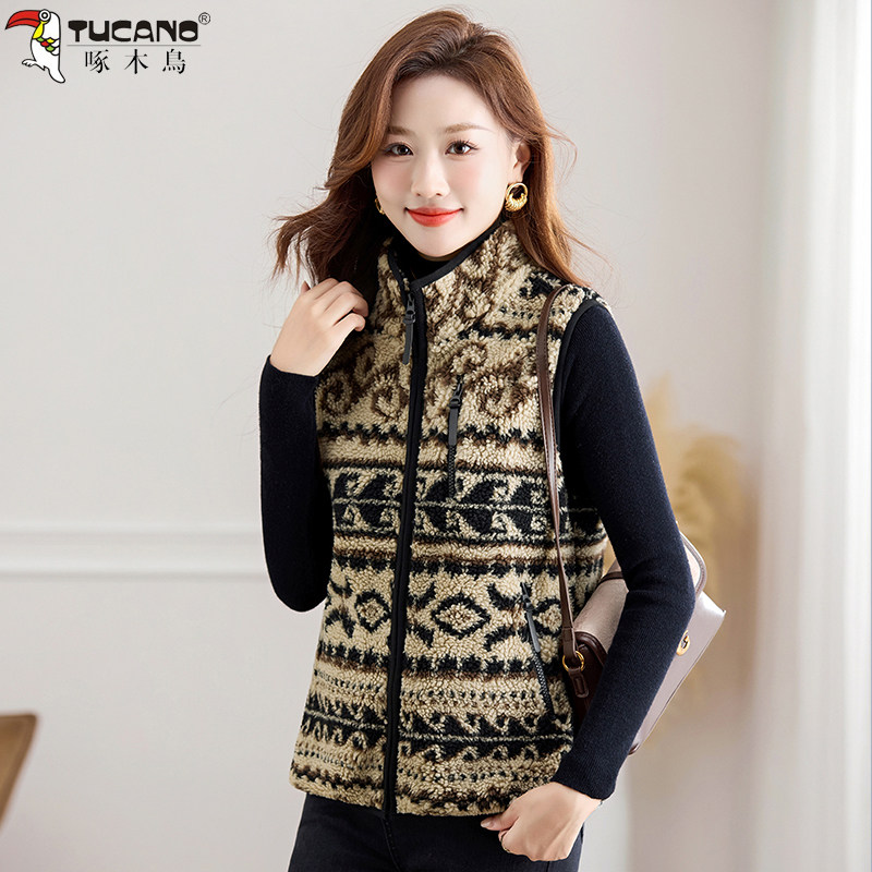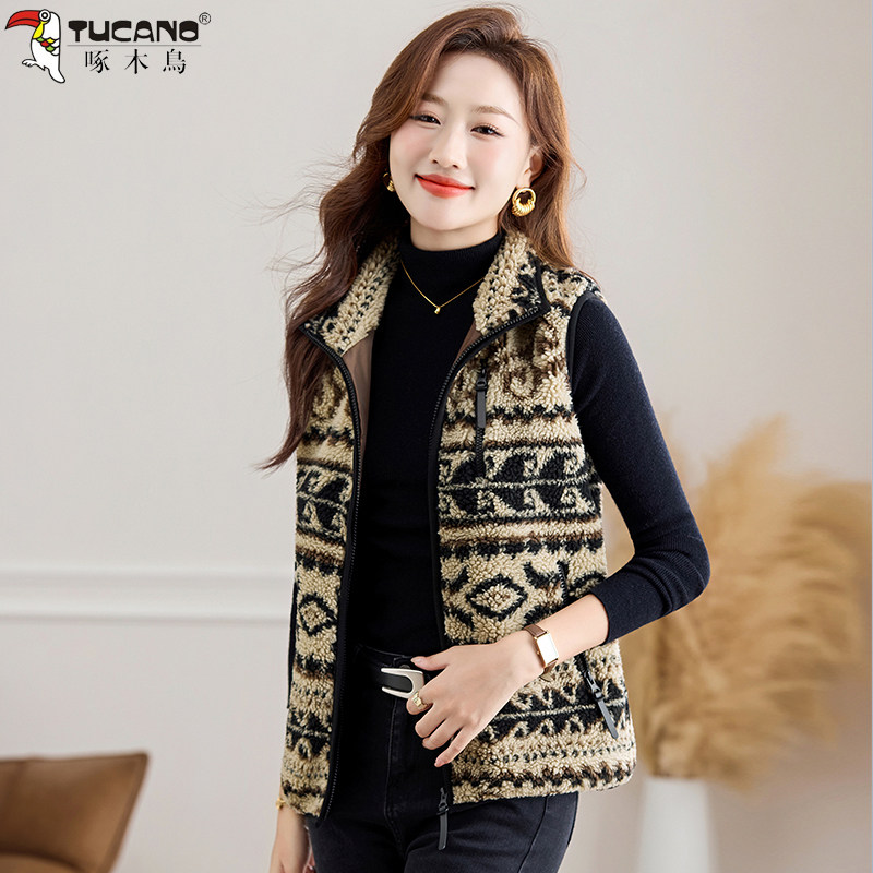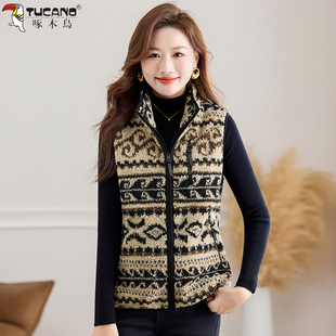 啄木鸟摇粒绒马甲女2025新款 加厚花纹羊羔绒保暖背心马夹外套 冬季
