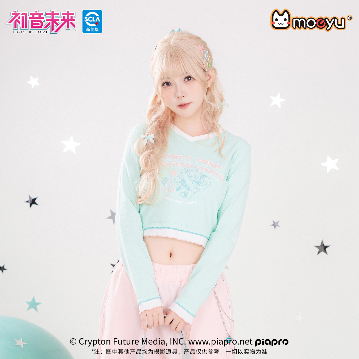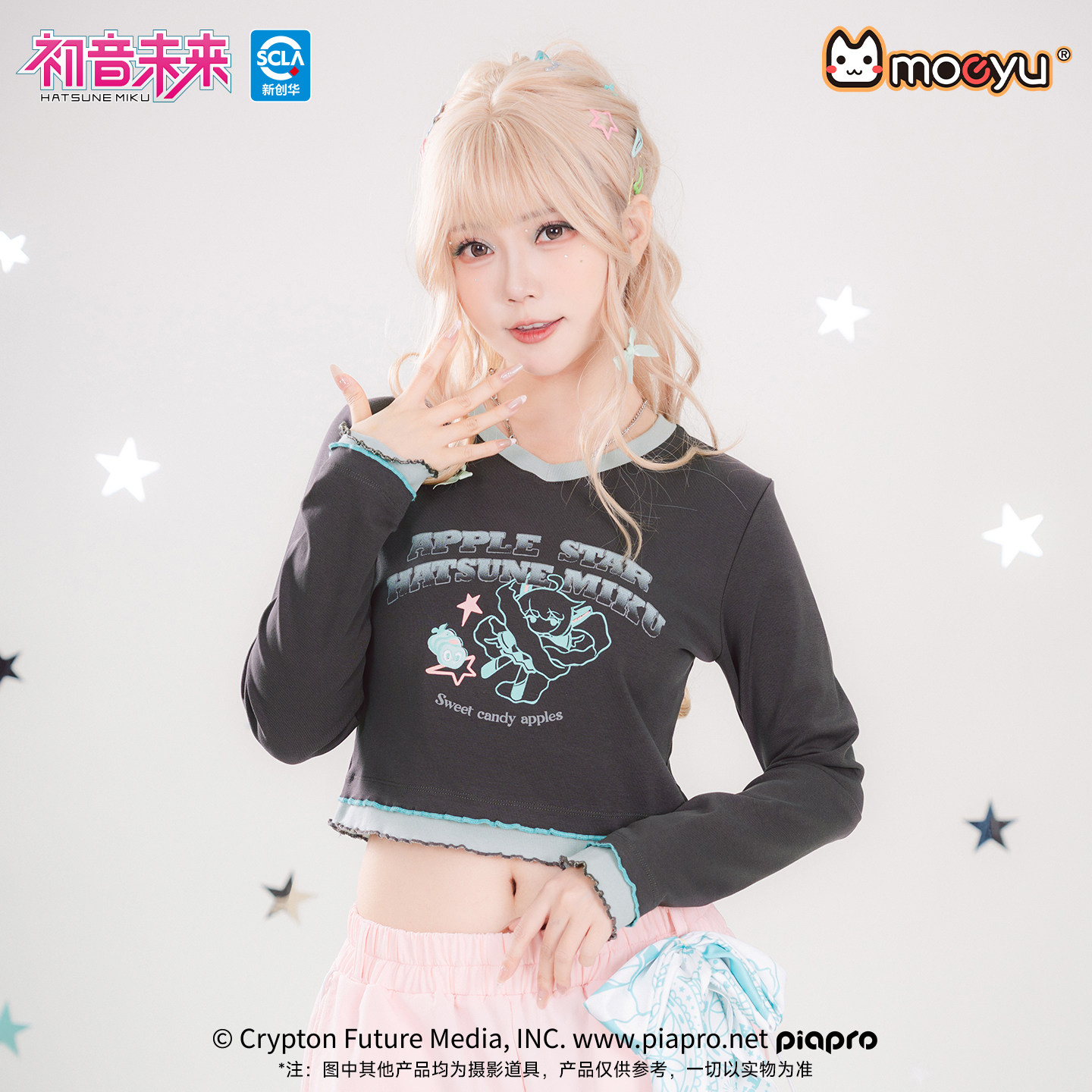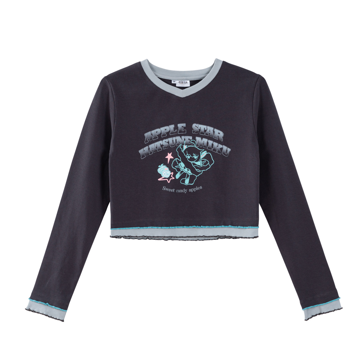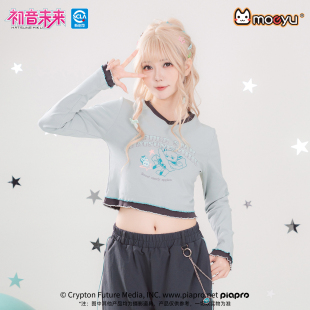 显瘦上衣 修身 moeyu初音未来千禧冰糖果春秋辣妹长袖 t恤女V领短款