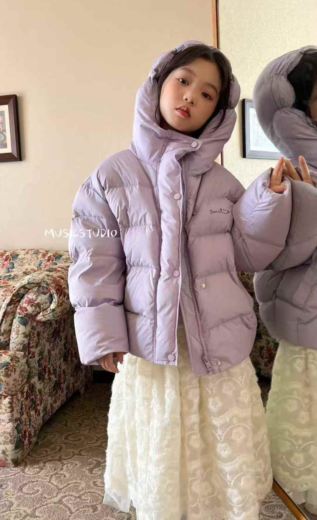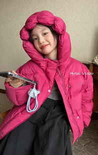 连帽羽绒服落肩袖 艾莱依2025新款 宽松显瘦保暖外套 陈都灵同款