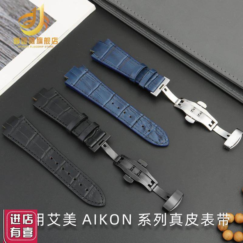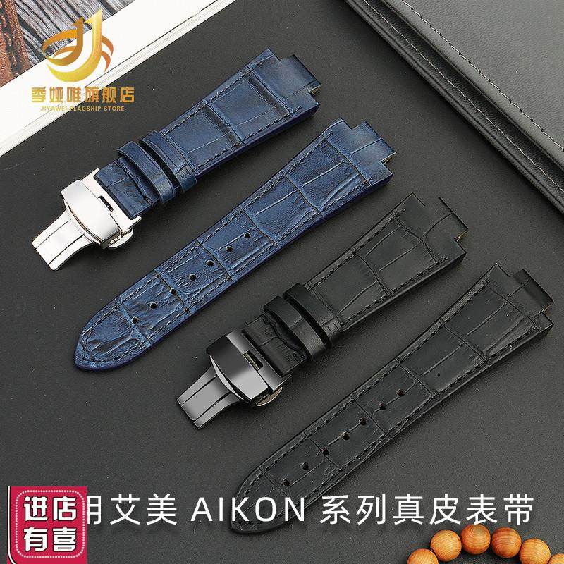 适用于艾美AIKONg系列男表AI6008 ai1018钢粒牛皮真皮手表带改装