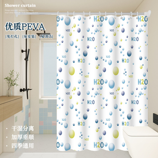 高档浴室防水浴帘卫生间淋浴窗帘干湿分离隔断遮挡速干防霉免打孔