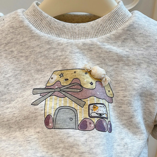 潮款 卫衣儿童保暖上衣童装 三层夹棉加厚棉衣女宝宝长袖 女童秋冬季