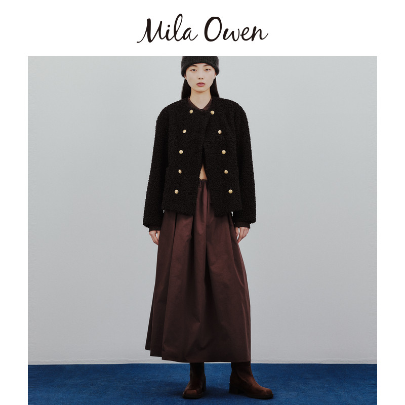 千金感撞色拼接收腰长袖 韩系高智法式 连衣裙 干枯玫瑰 Even一雯