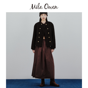 pusumede黑色高级感小香风连衣裙女2025新款 圆领收腰气质裙子 法式