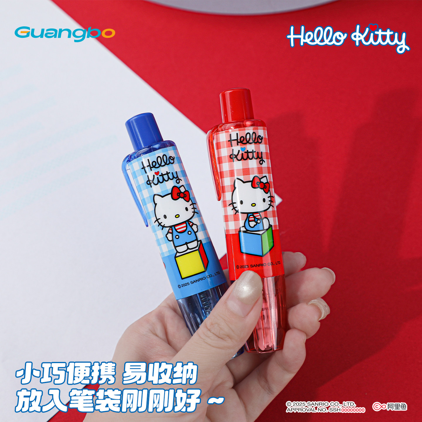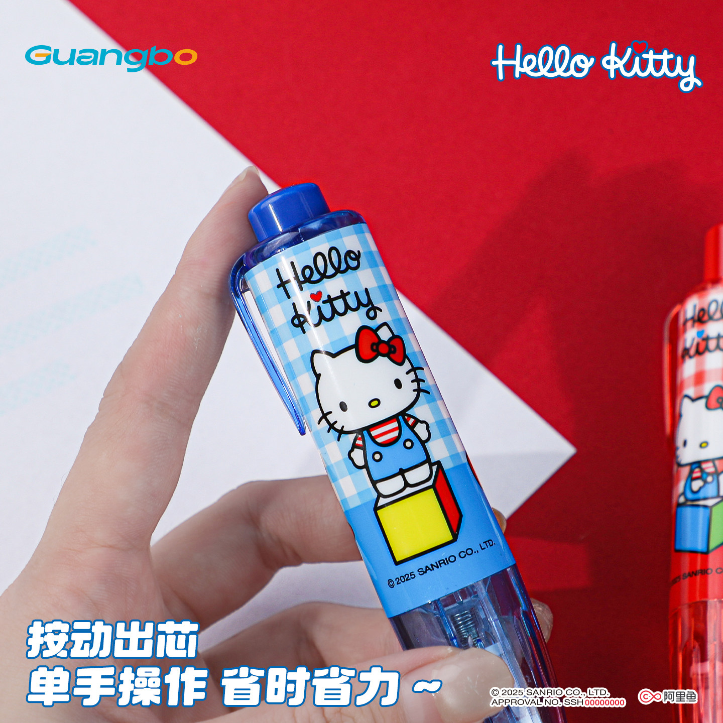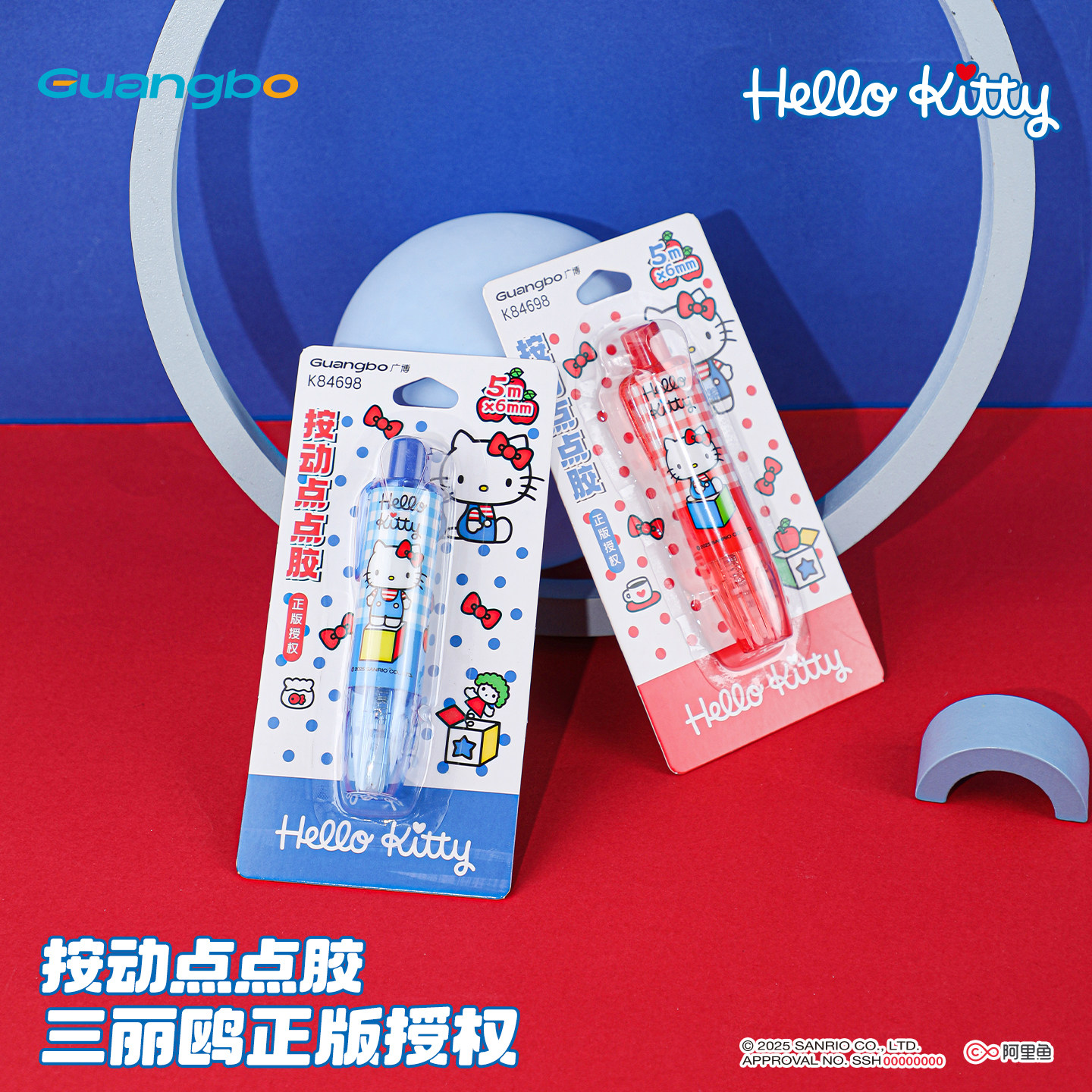 广博三丽鸥文具经典 中小学生专用胶棒胶带双面胶高颜值ins风 凯蒂猫5m按动点点胶笔式
