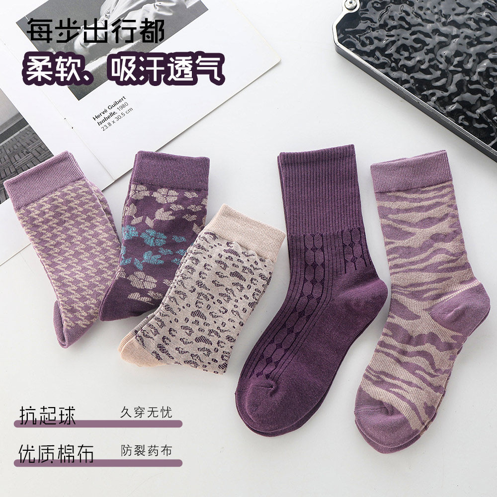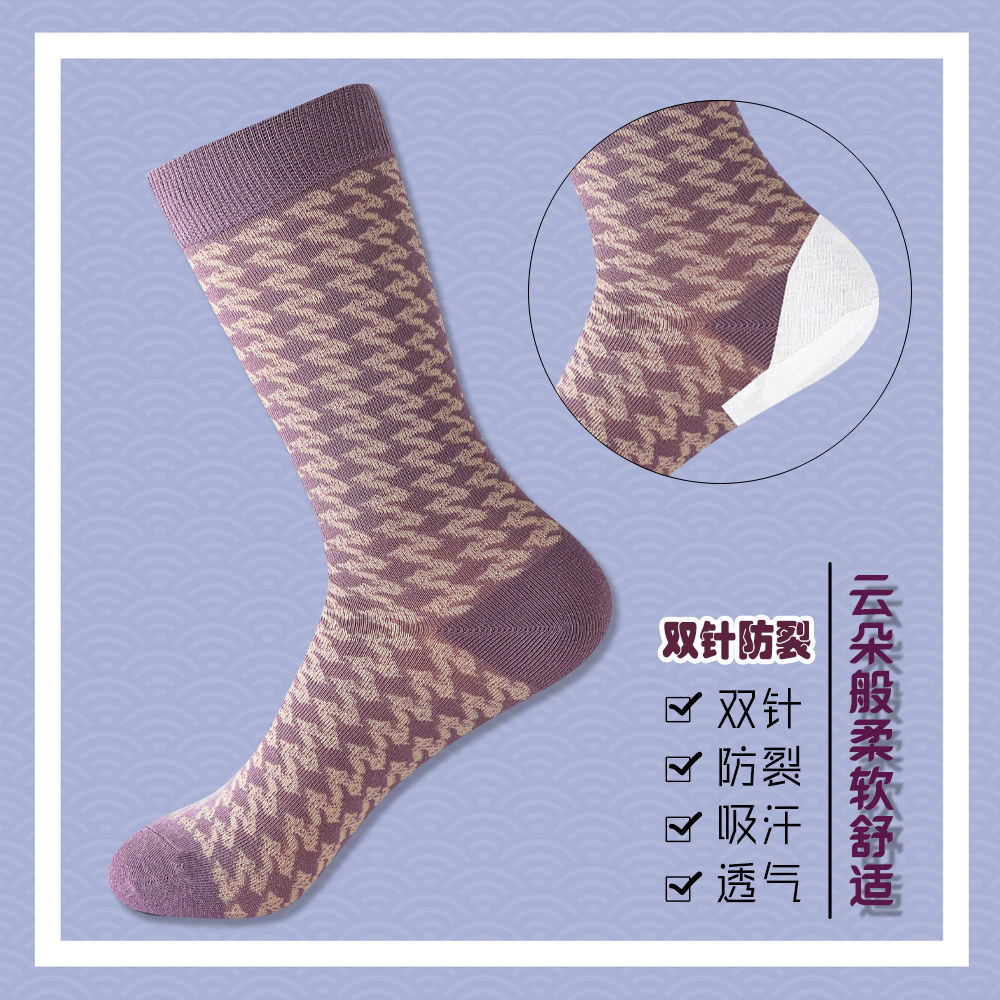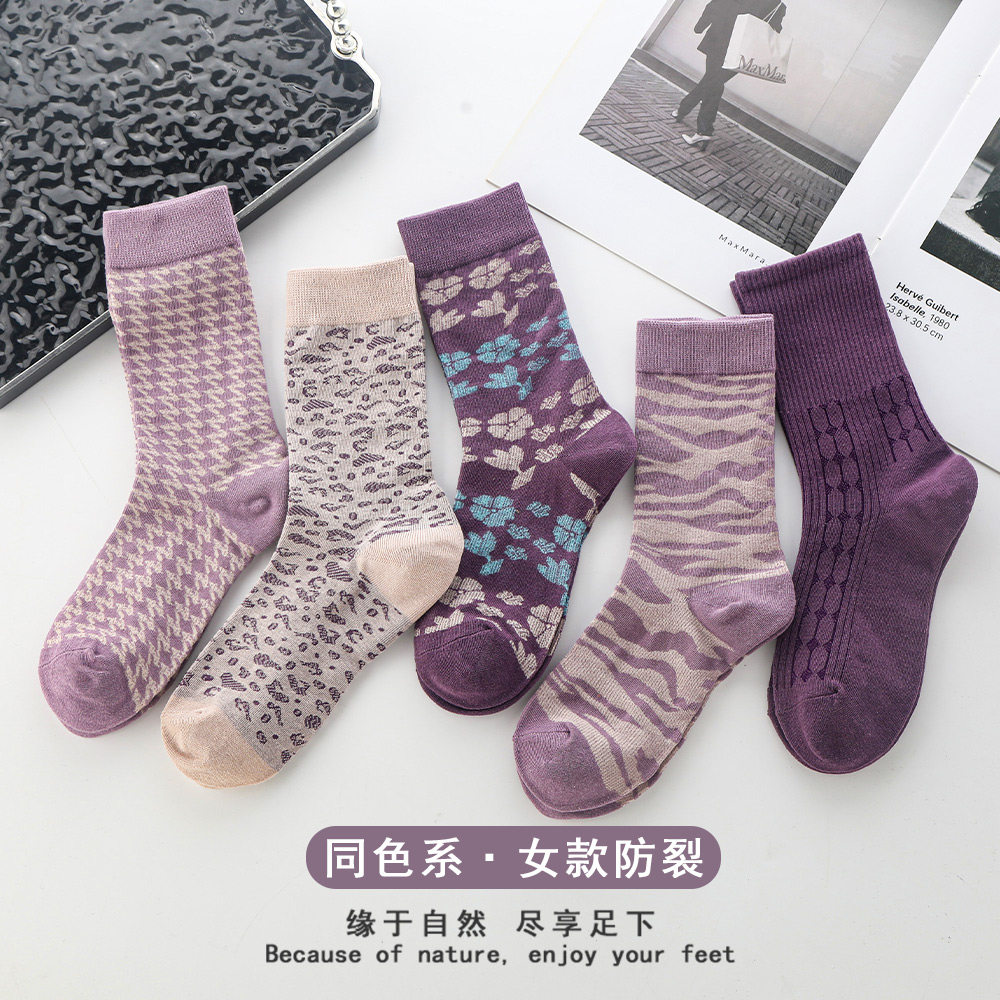 千鸟格防裂袜子女中筒袜纯棉裂脚袜加厚保暖可爱秋冬脚干裂保湿 袜